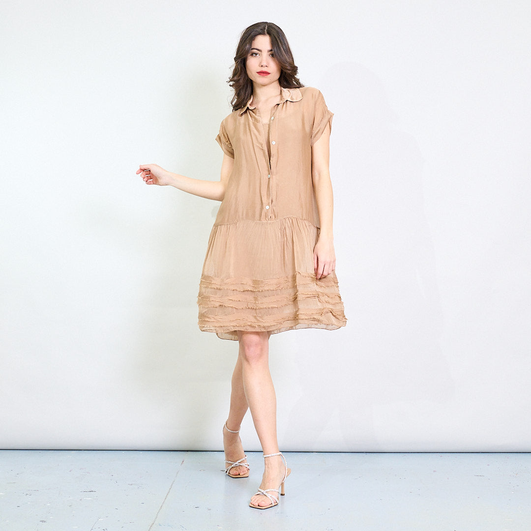 Milzīga krekla blūze ar teksturētu apakšmalu un īsām piedurknēm vairumtirdzniecība