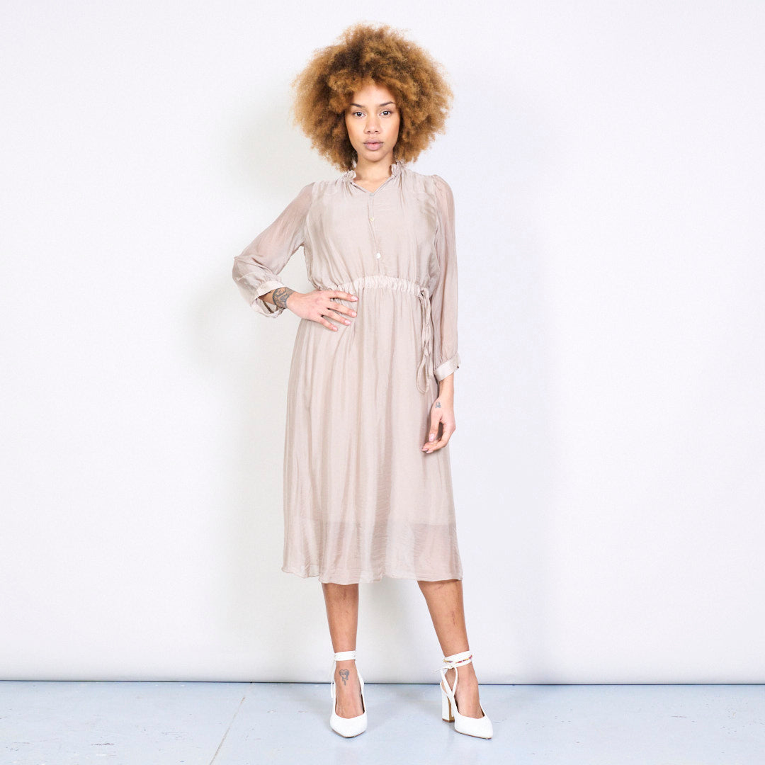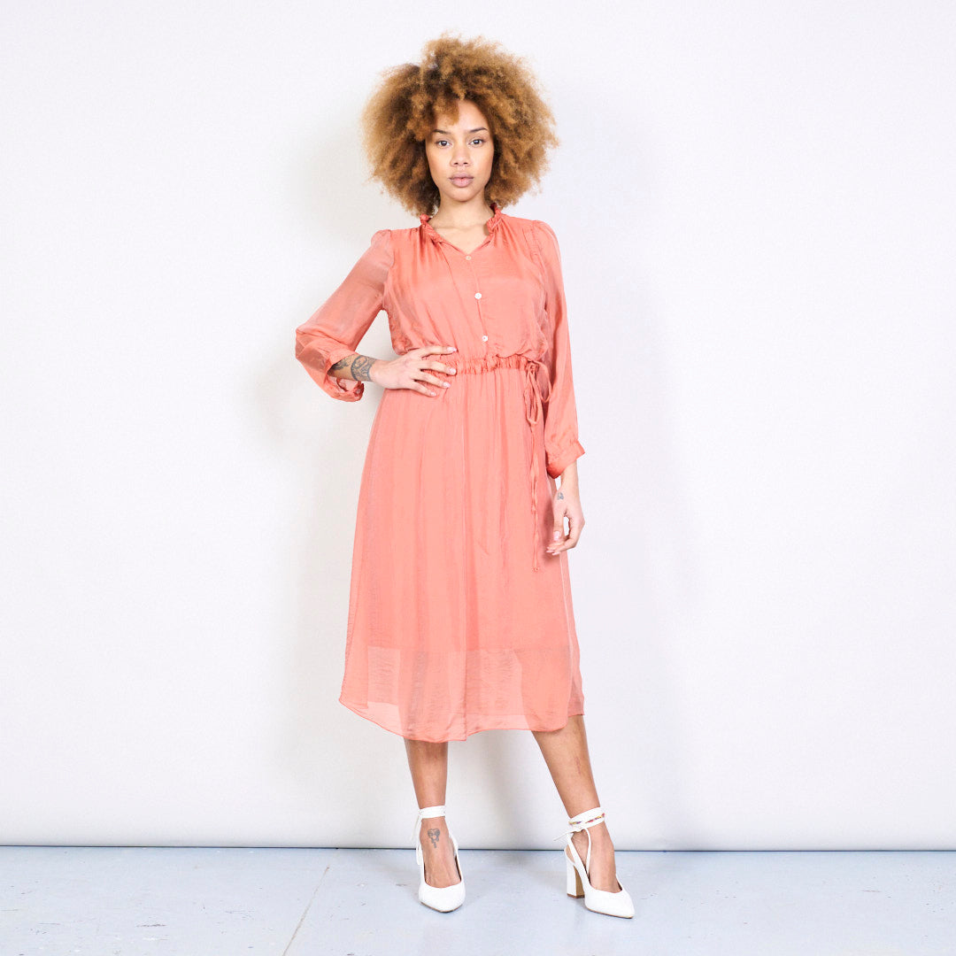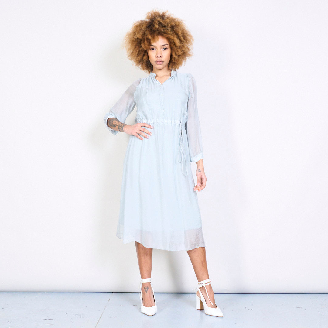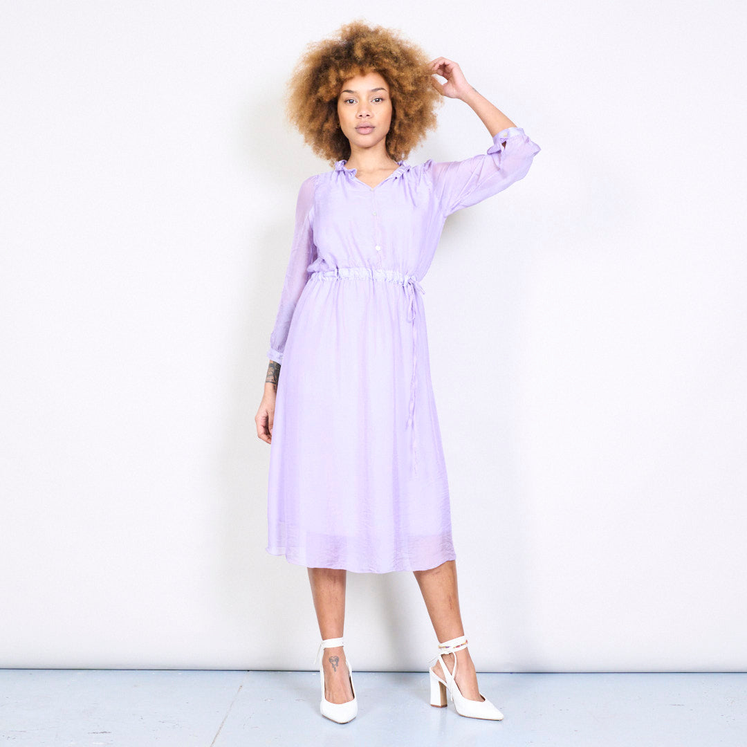 Pogas priekšējā midi slik kleita ar ruffle apkakles vairumtirdzniecību