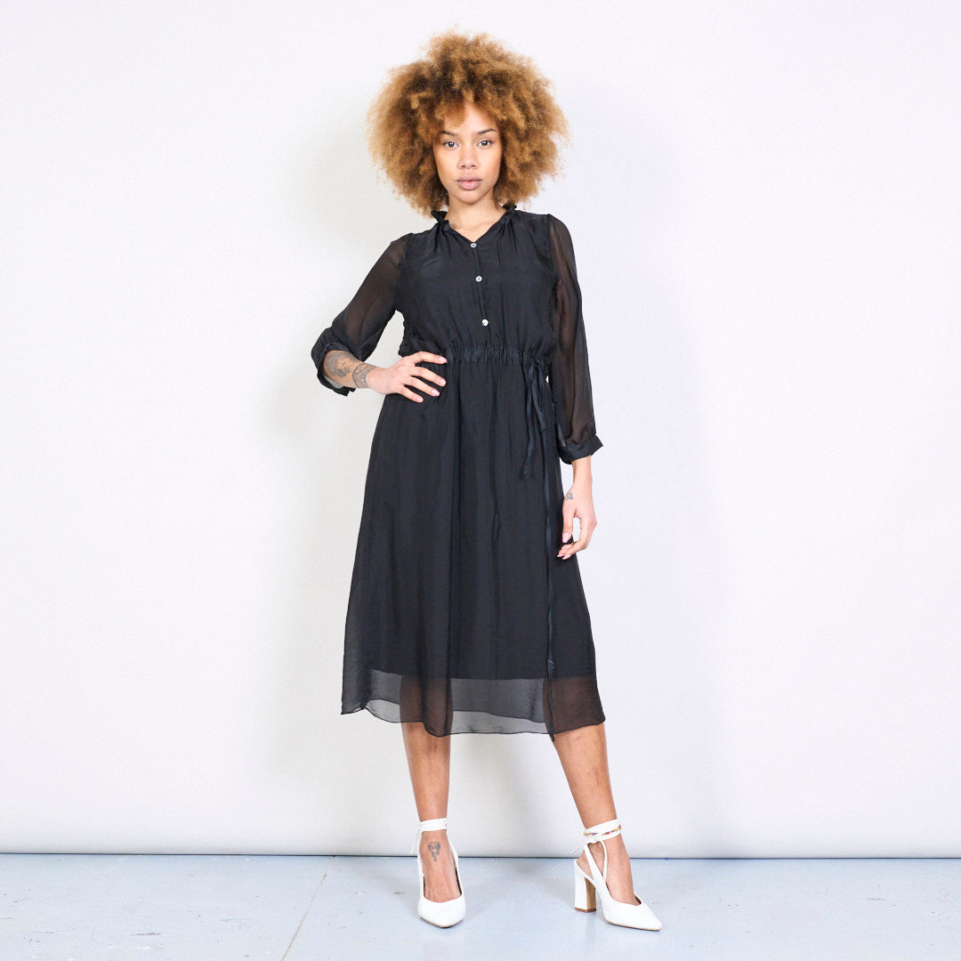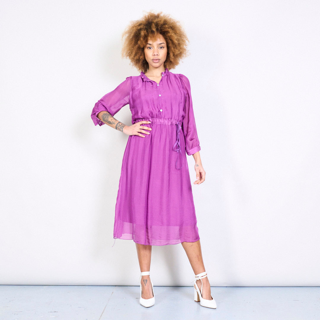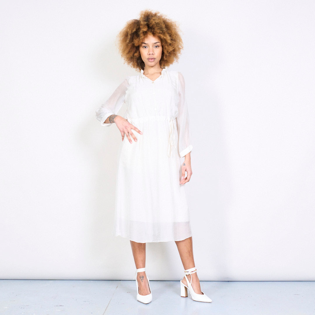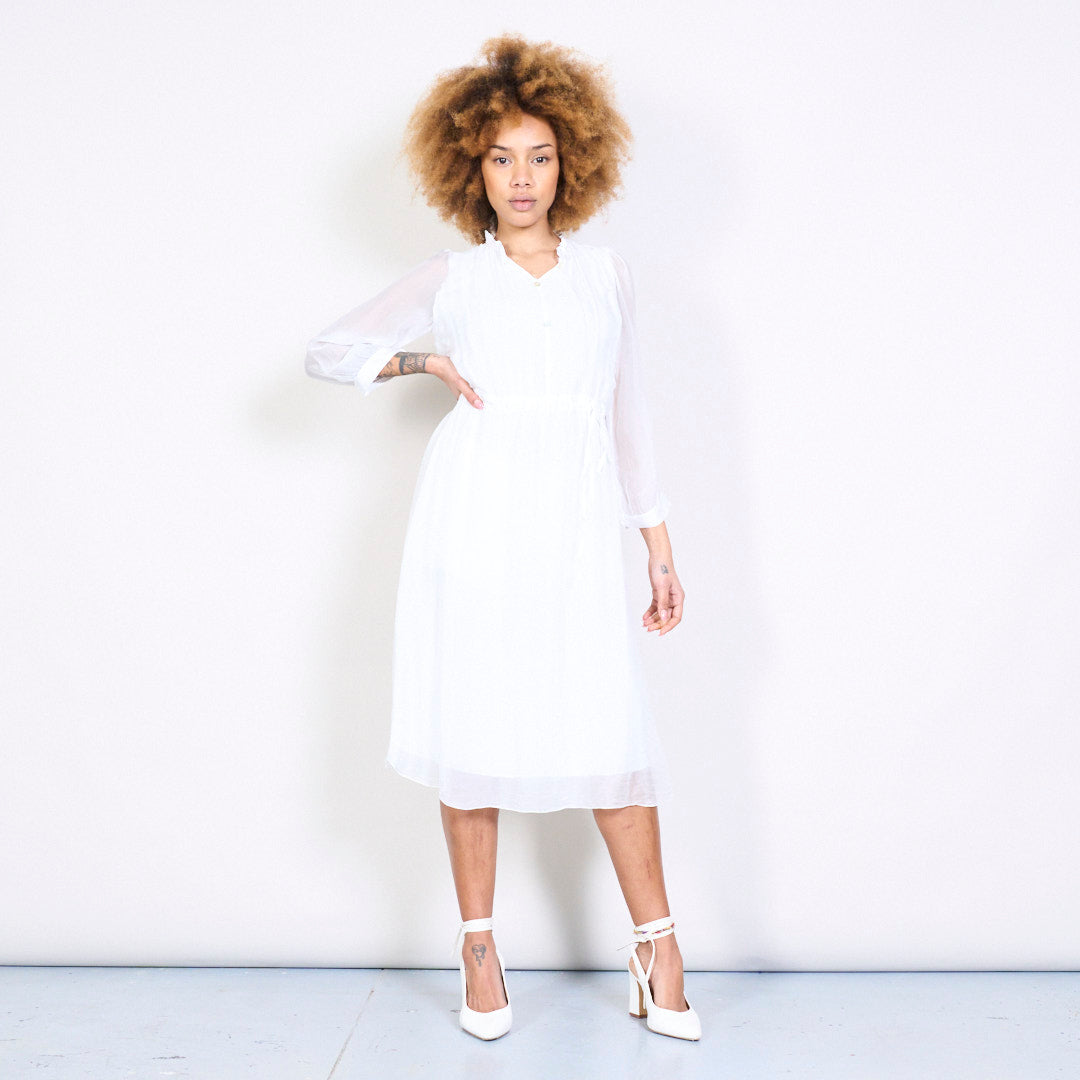 Pogas priekšējā midi slik kleita ar ruffle apkakles vairumtirdzniecību