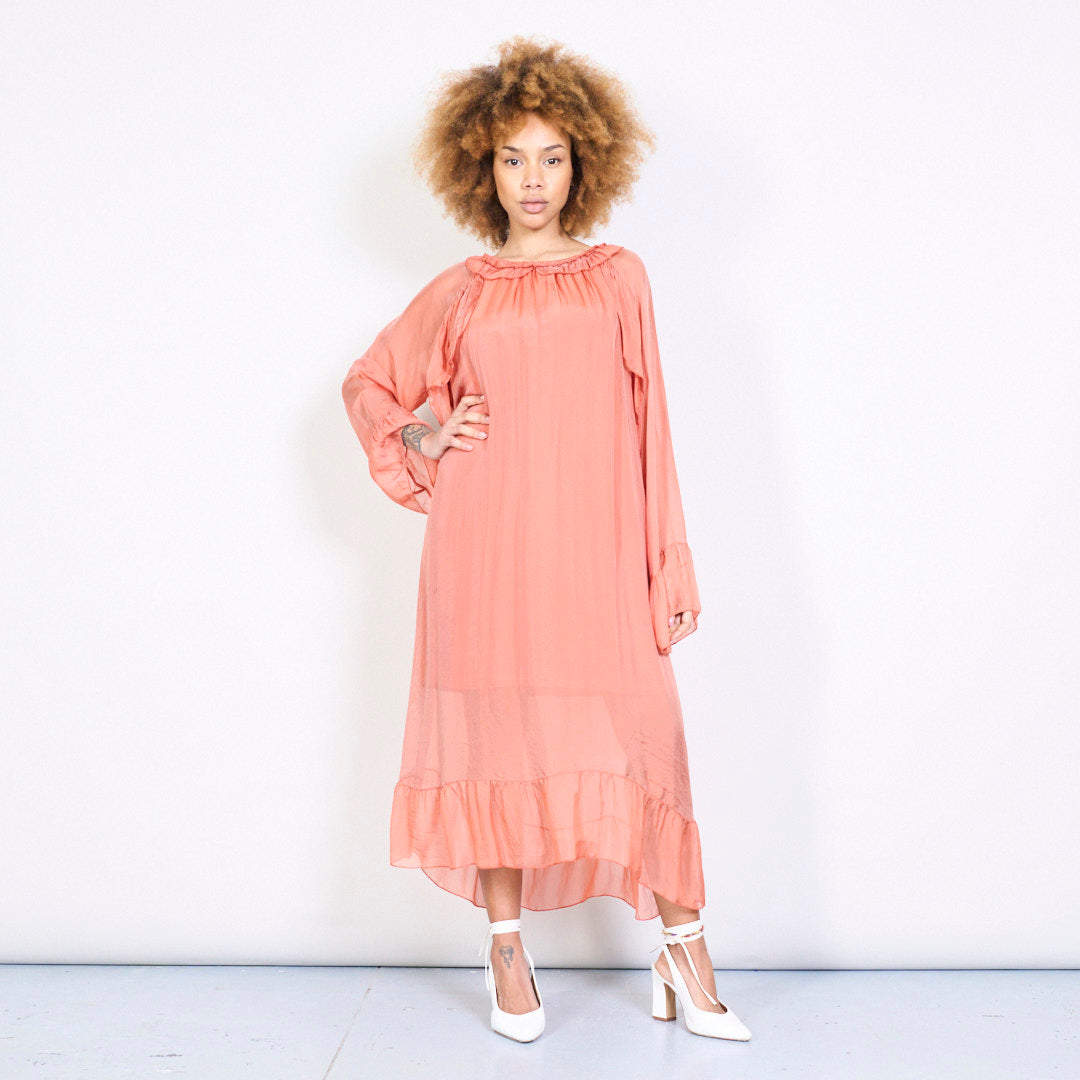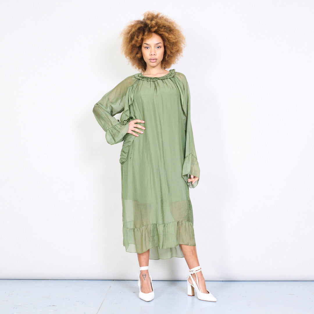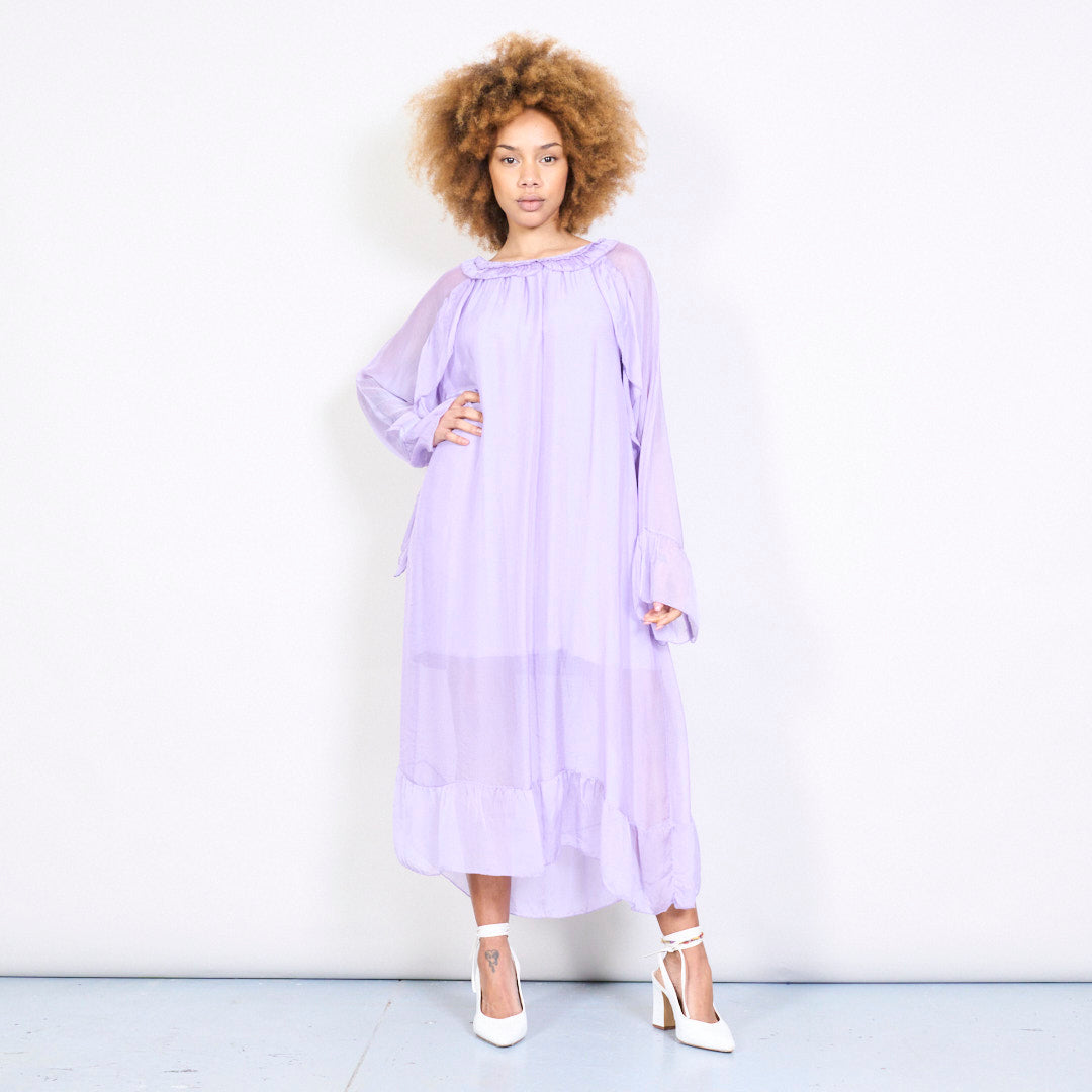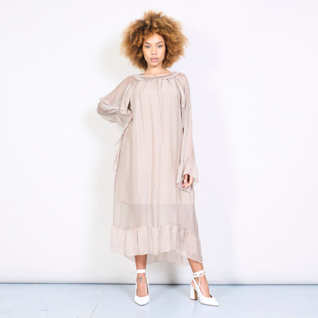 Sabiedēta apkakles midi kleita ar garu piedurkņu vairumtirdzniecību