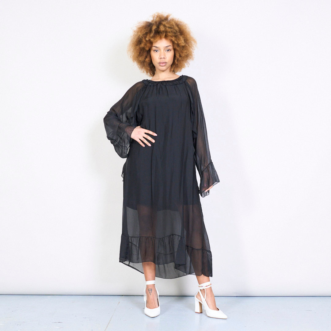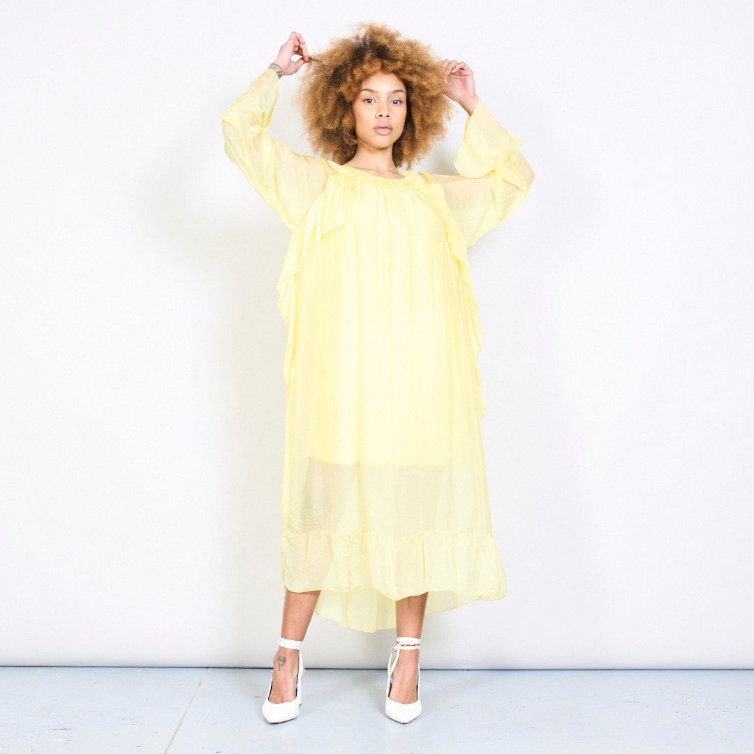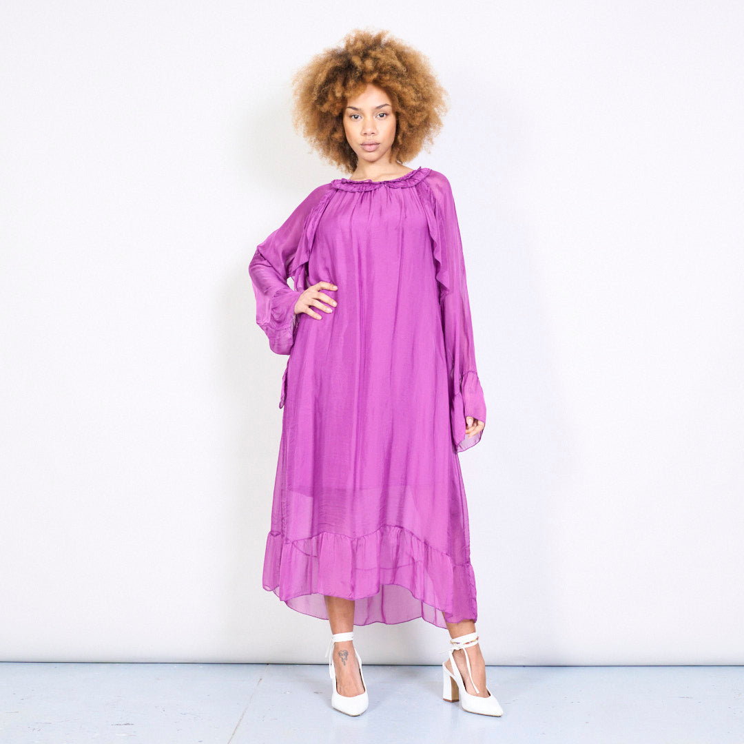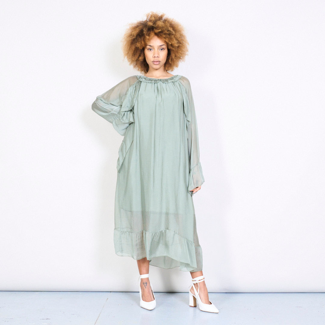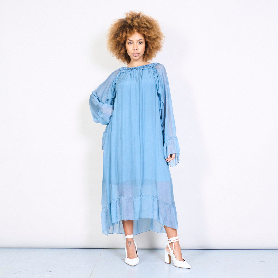 Sabiedēta apkakles midi kleita ar garu piedurkņu vairumtirdzniecību