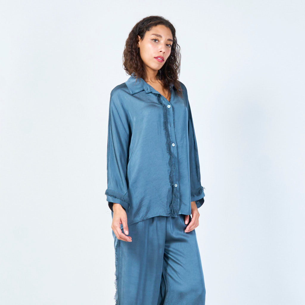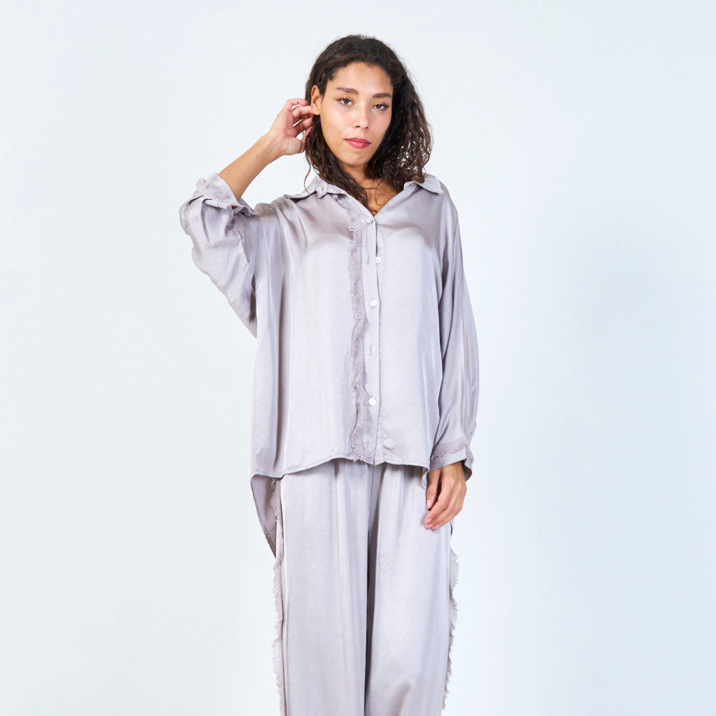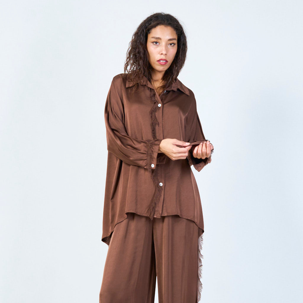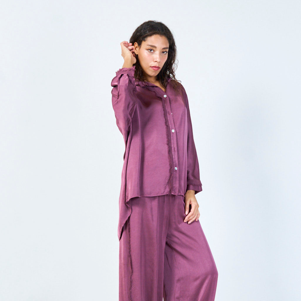 Sašļakstīta mala ar garām piedurknēm zīda blūzes vairumtirdzniecībā