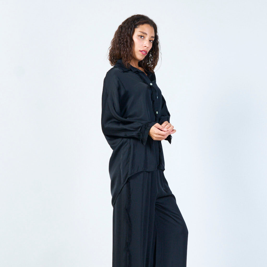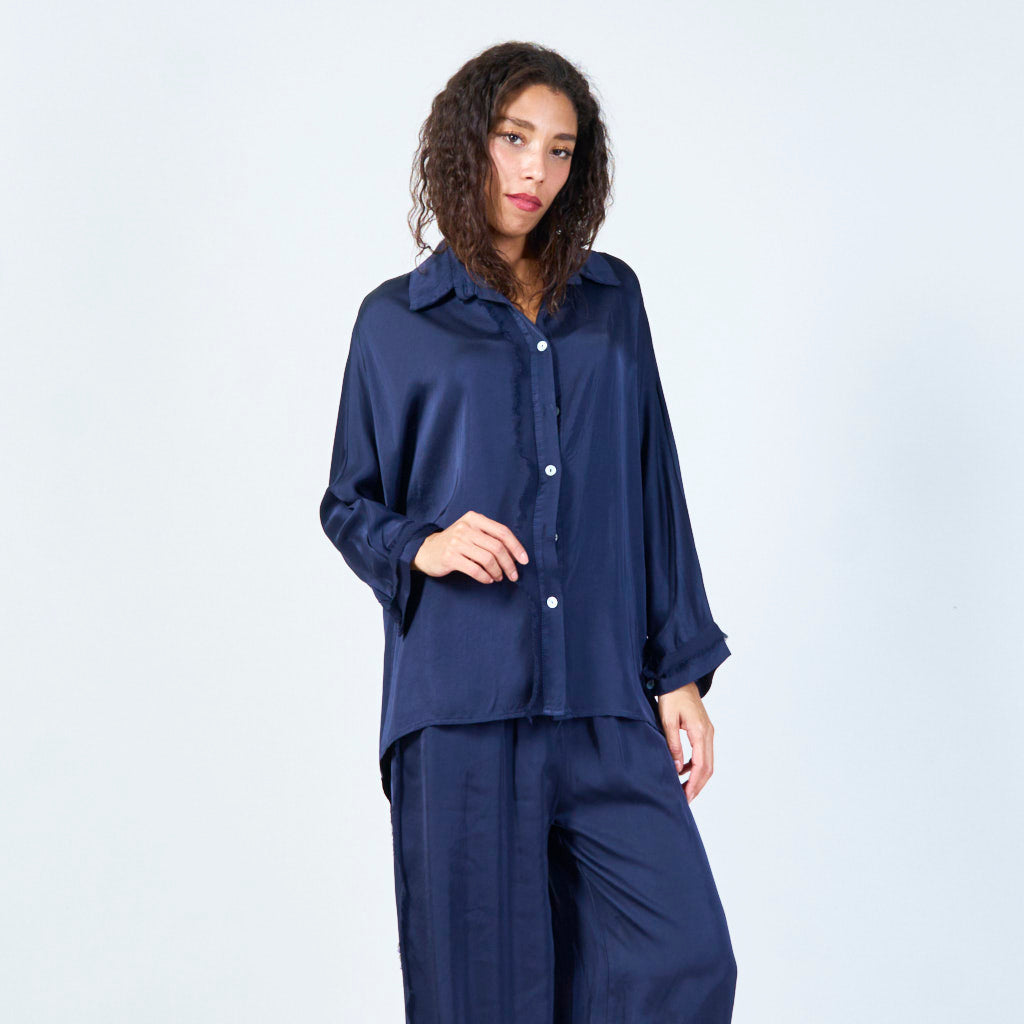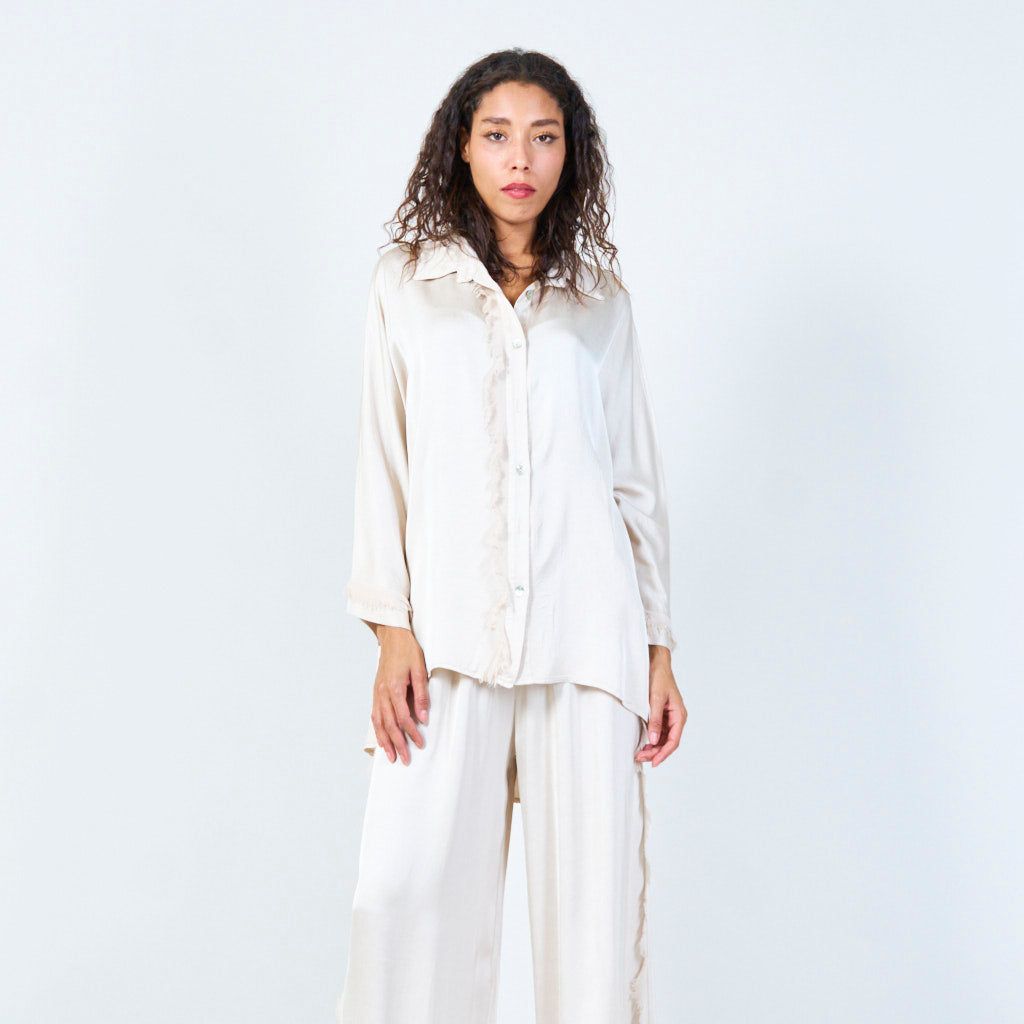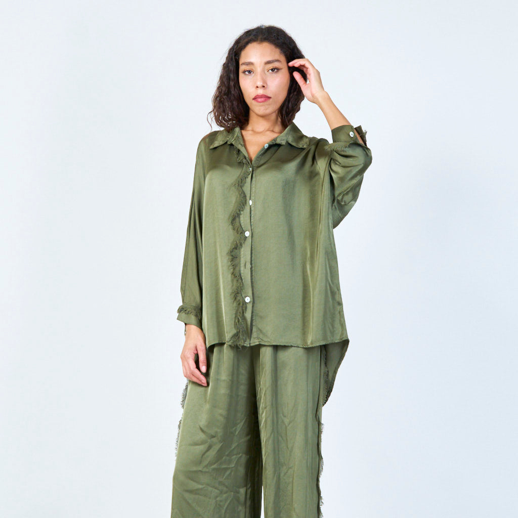 Sašļakstīta mala ar garām piedurknēm zīda blūzes vairumtirdzniecībā