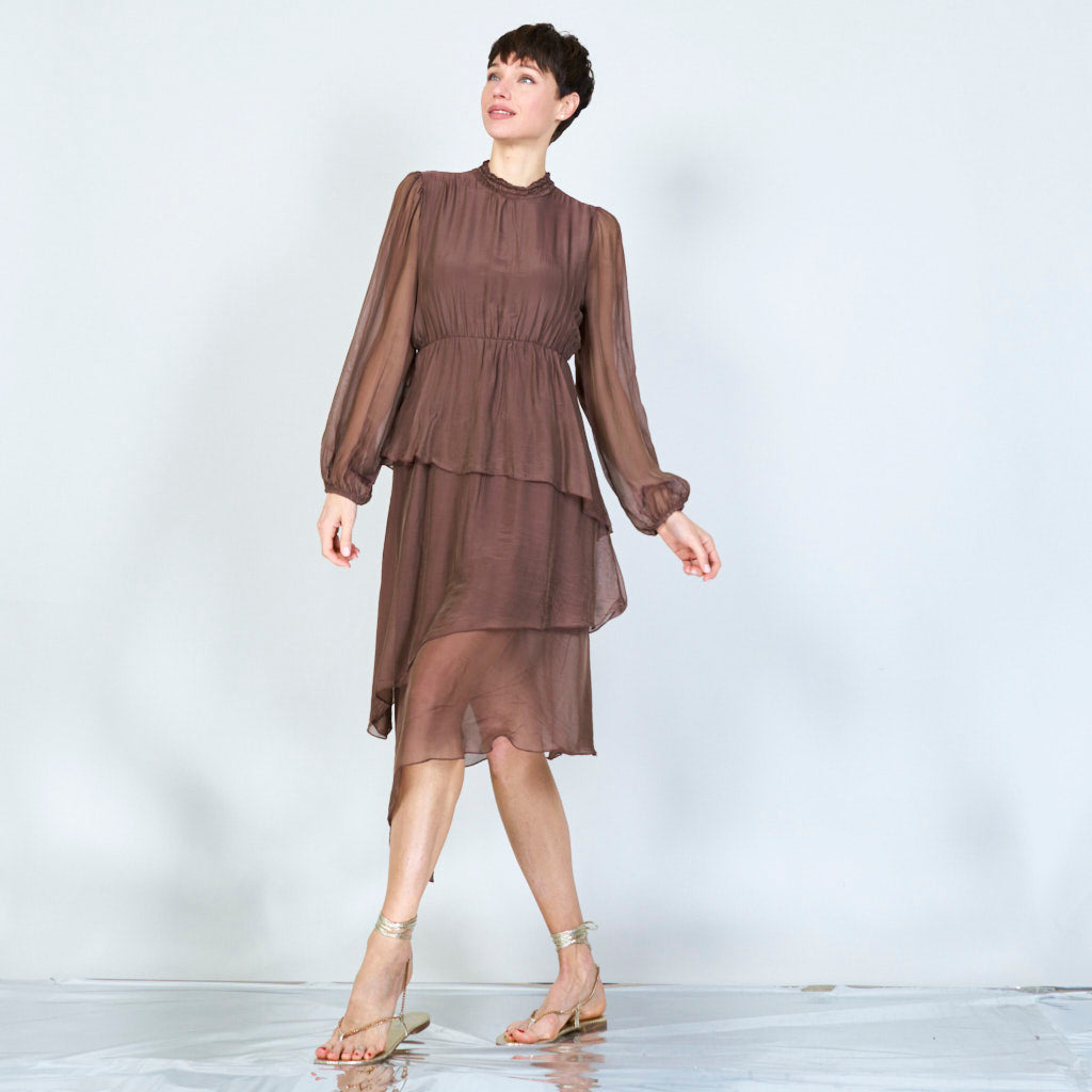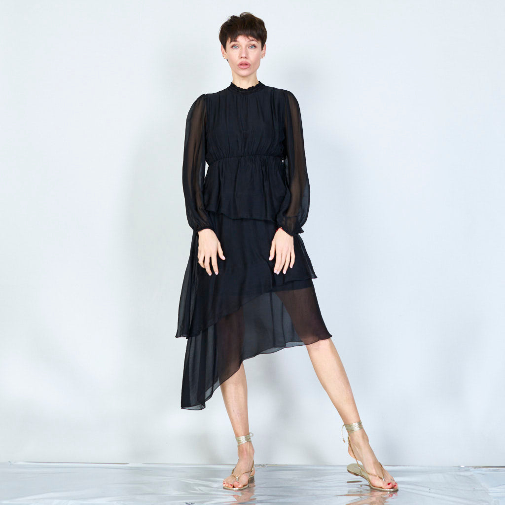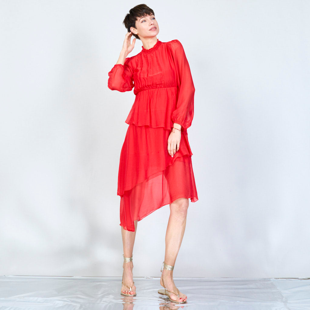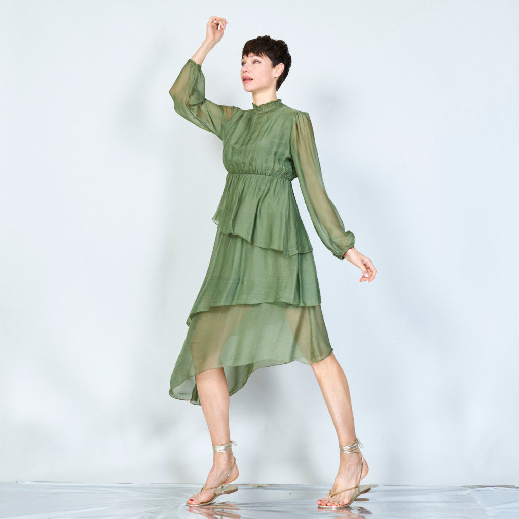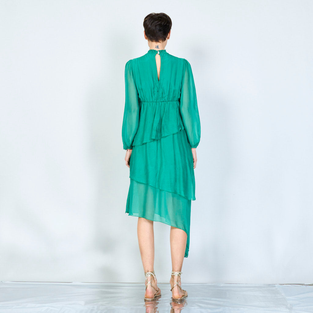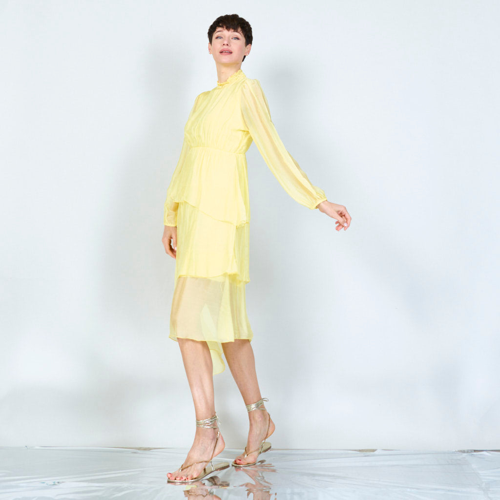 Highneck ar ruffles midi zīda šifona kleitas vairumtirdzniecību