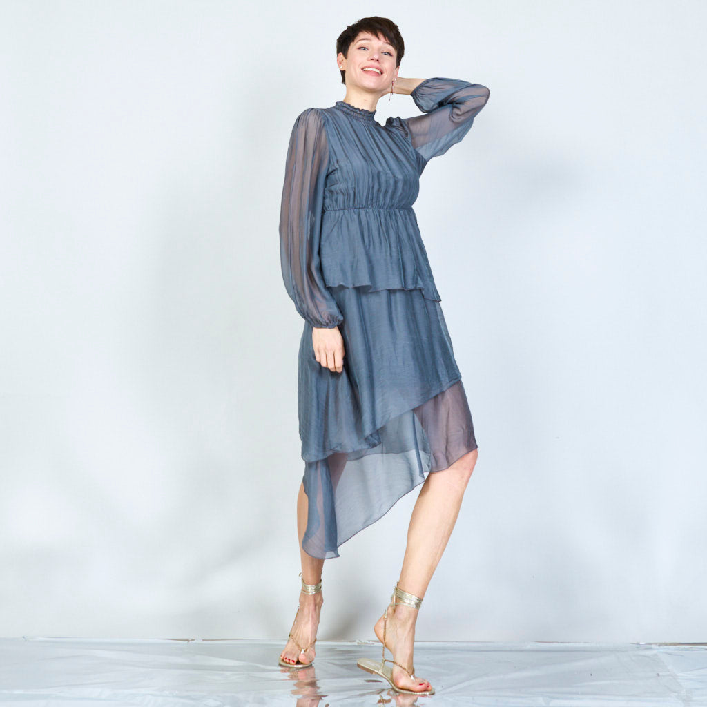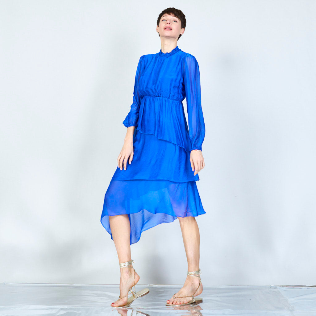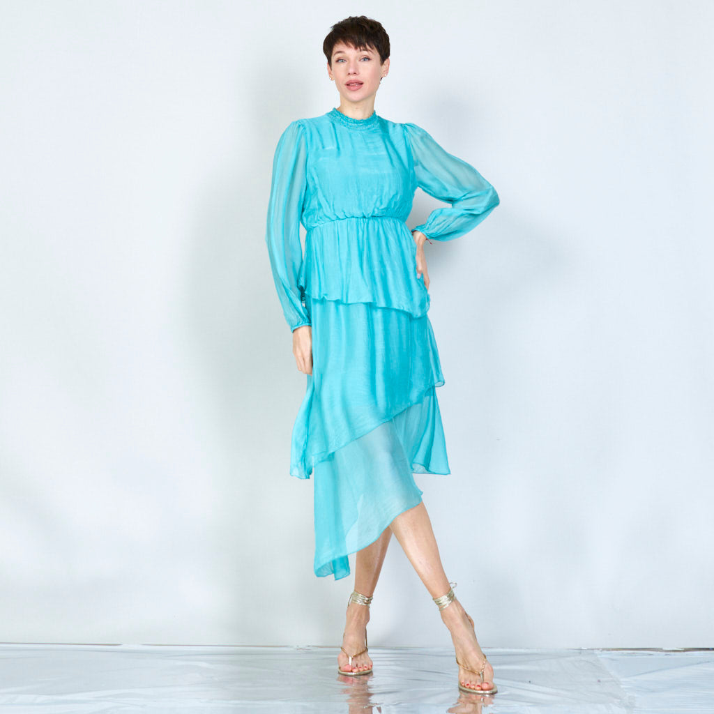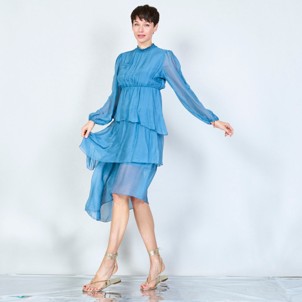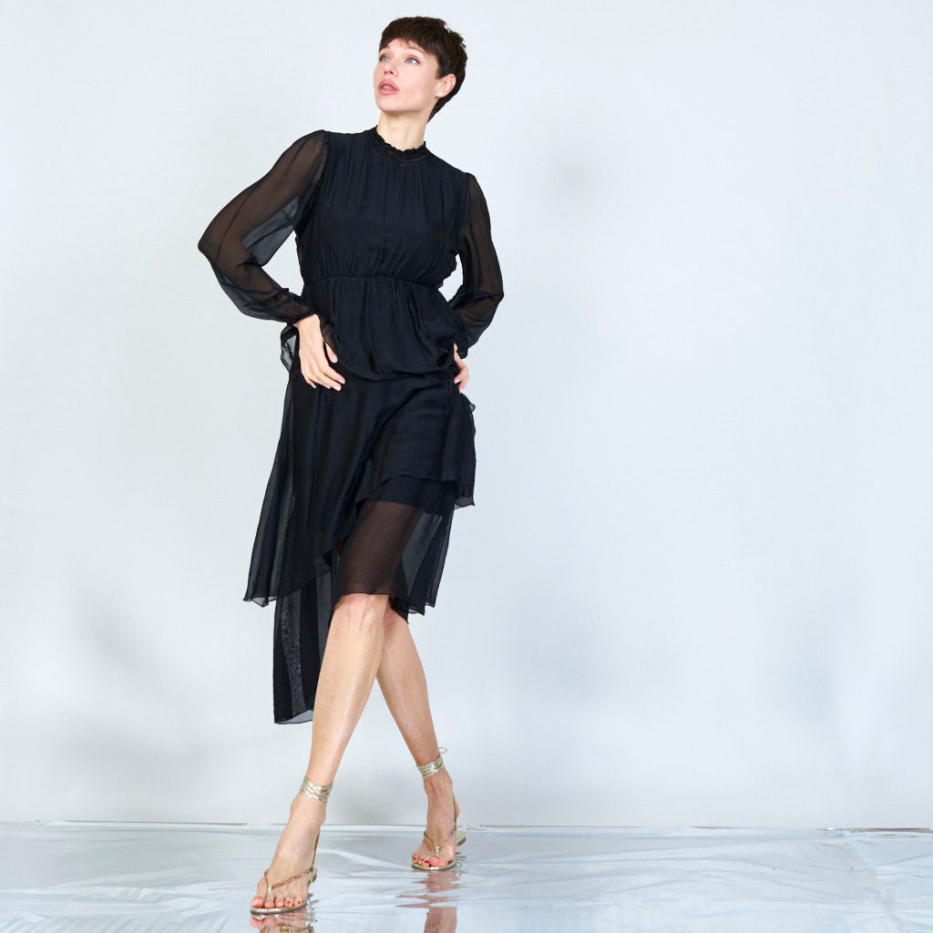 Highneck ar ruffles midi zīda šifona kleitas vairumtirdzniecību