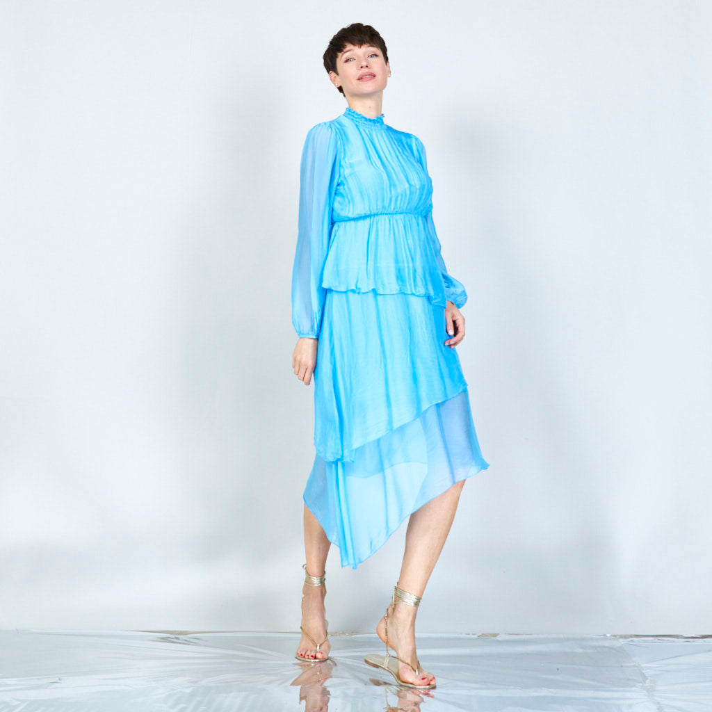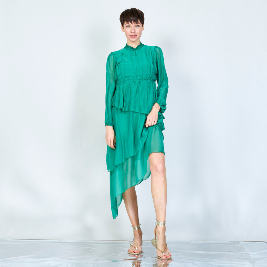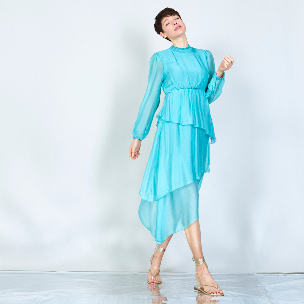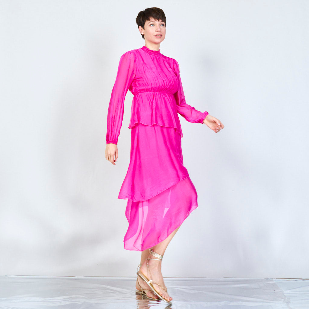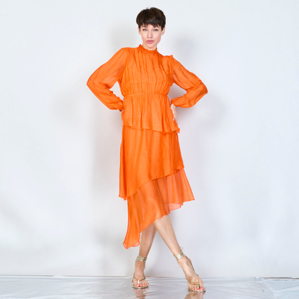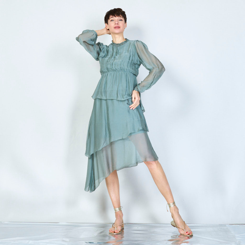 Highneck ar ruffles midi zīda šifona kleitas vairumtirdzniecību