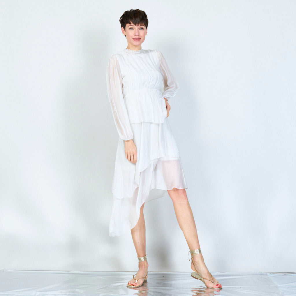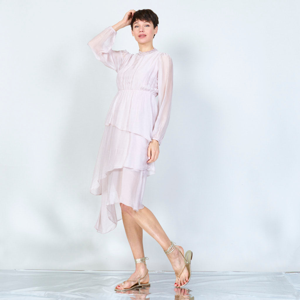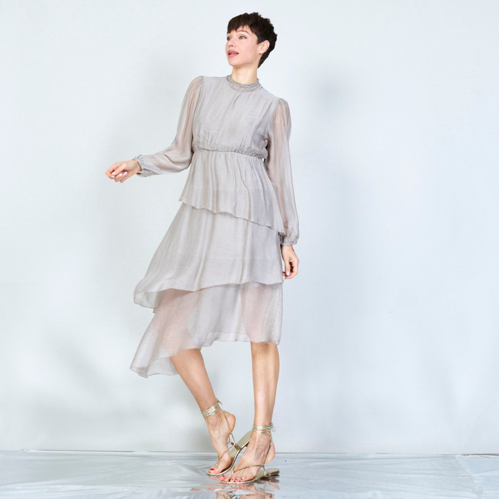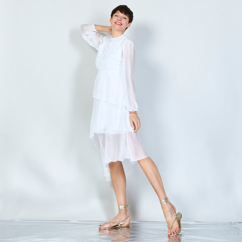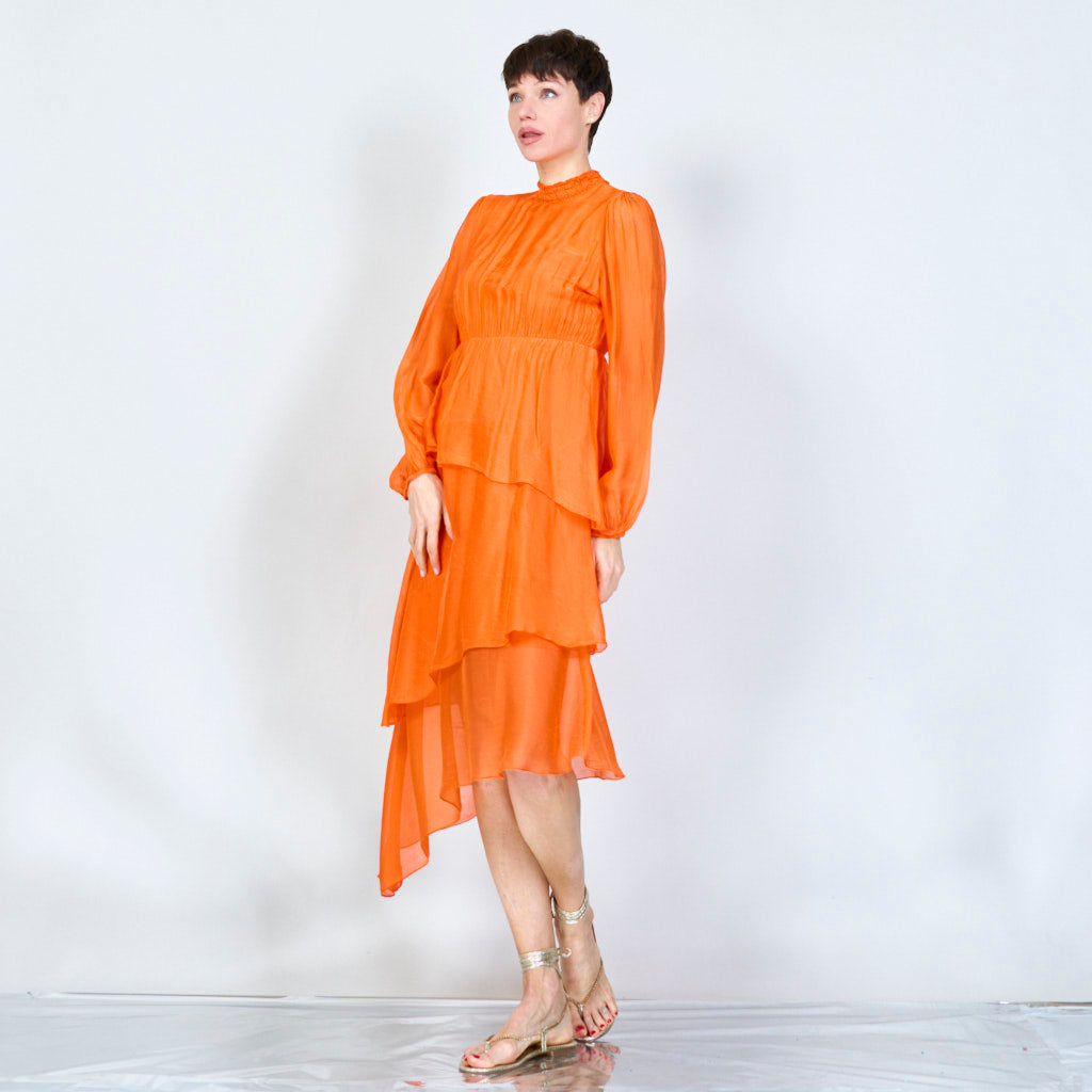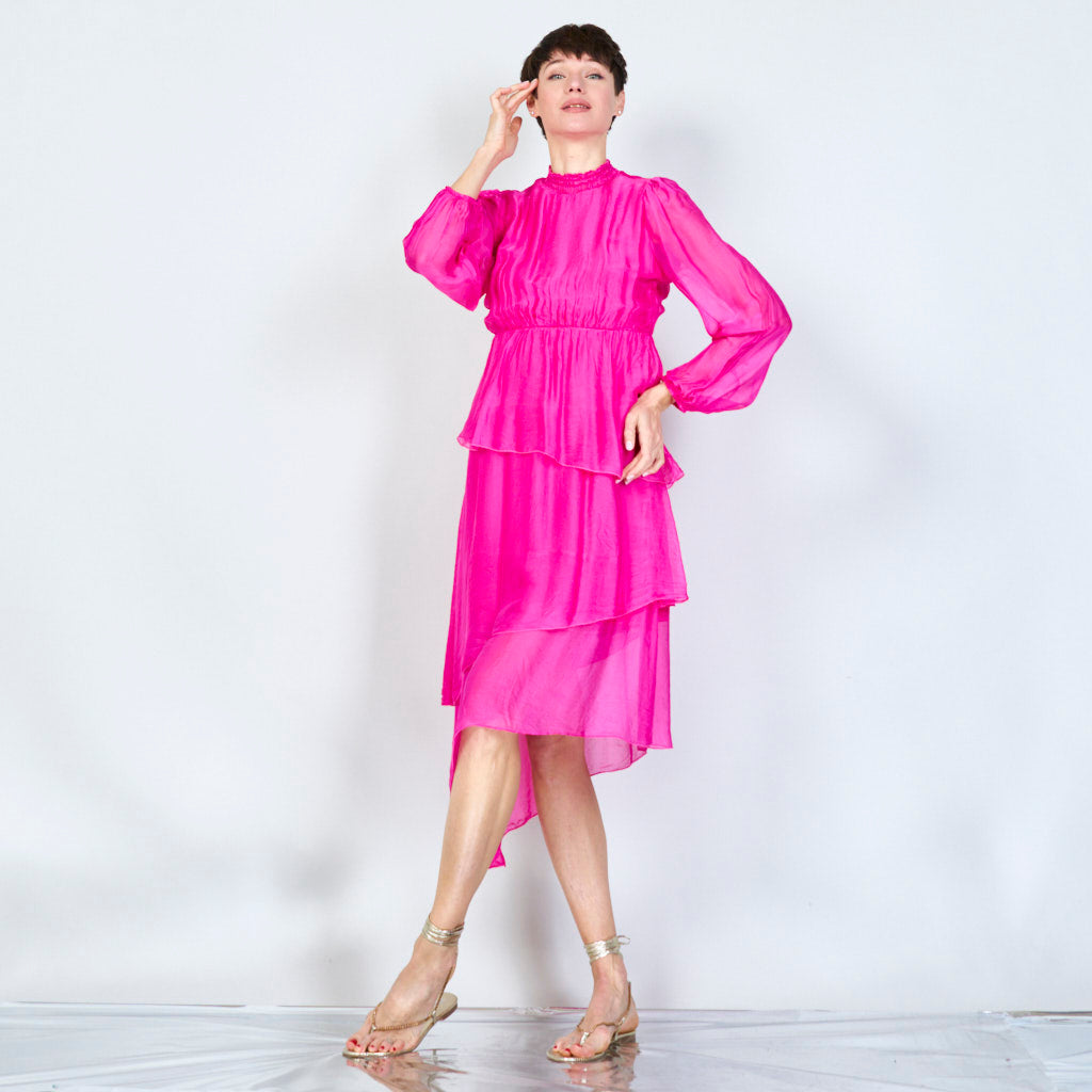 Highneck ar ruffles midi zīda šifona kleitas vairumtirdzniecību