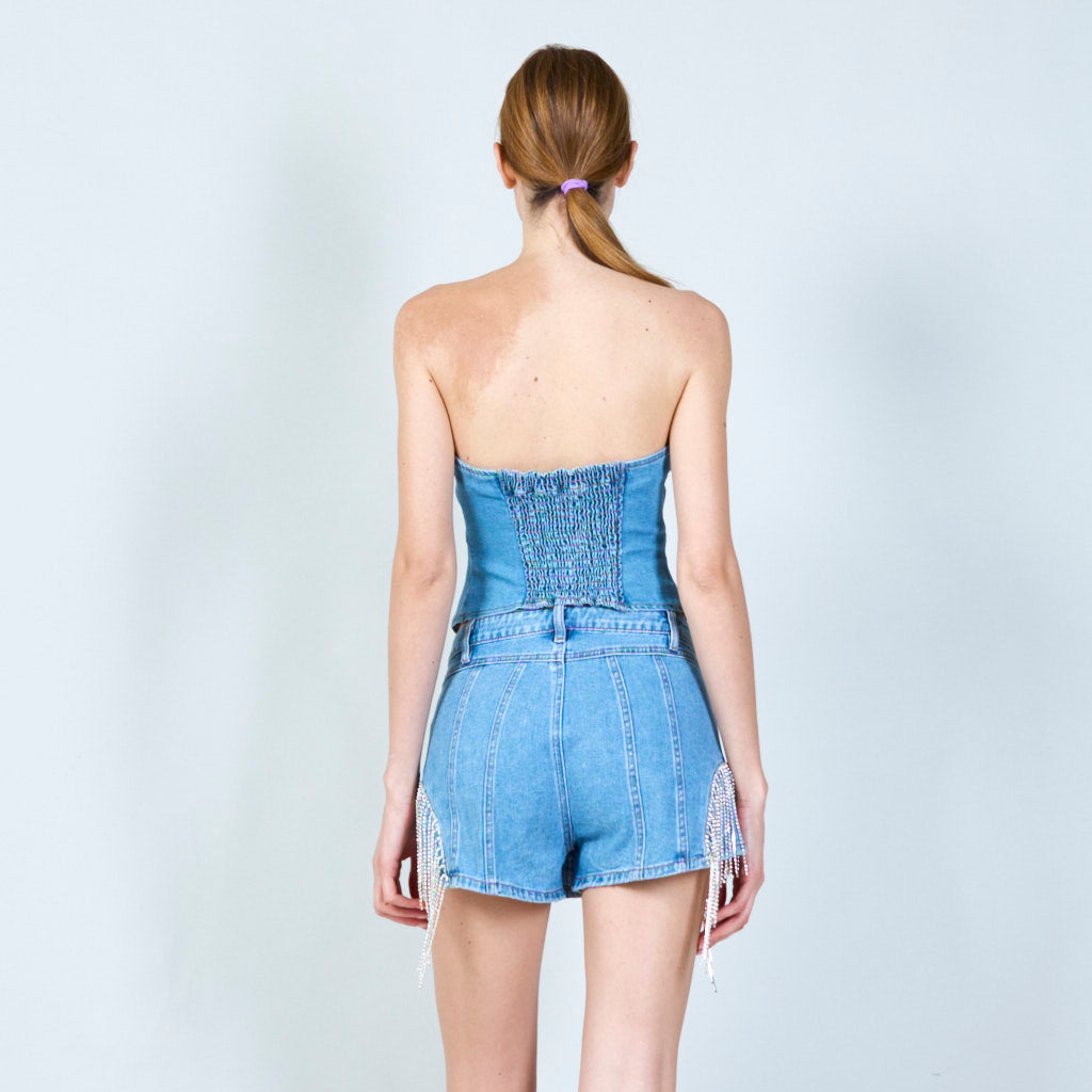 Dzirkstošie izrotātie džinsa šorti ar...