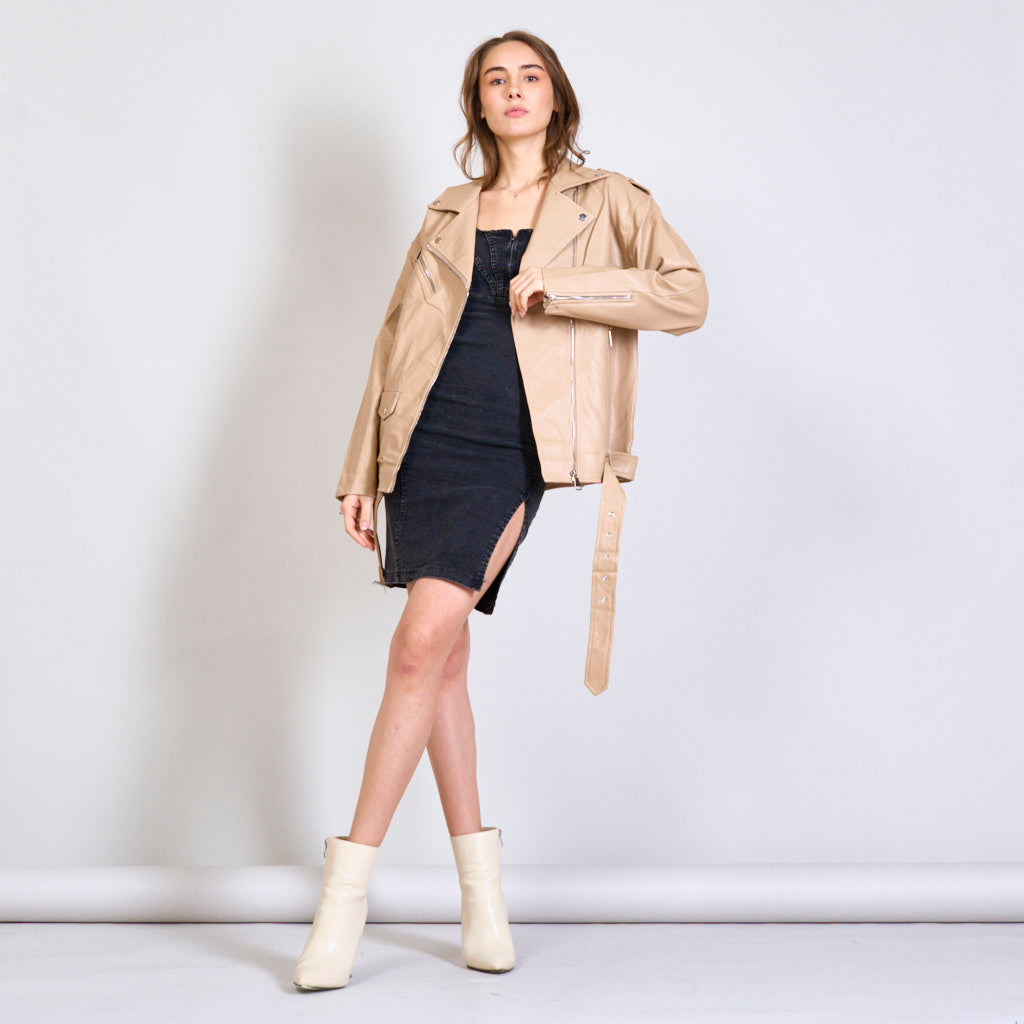Mākslīgā ādas jaka ar daudziem rāvējslēdzēju vairumtirdzniecību
