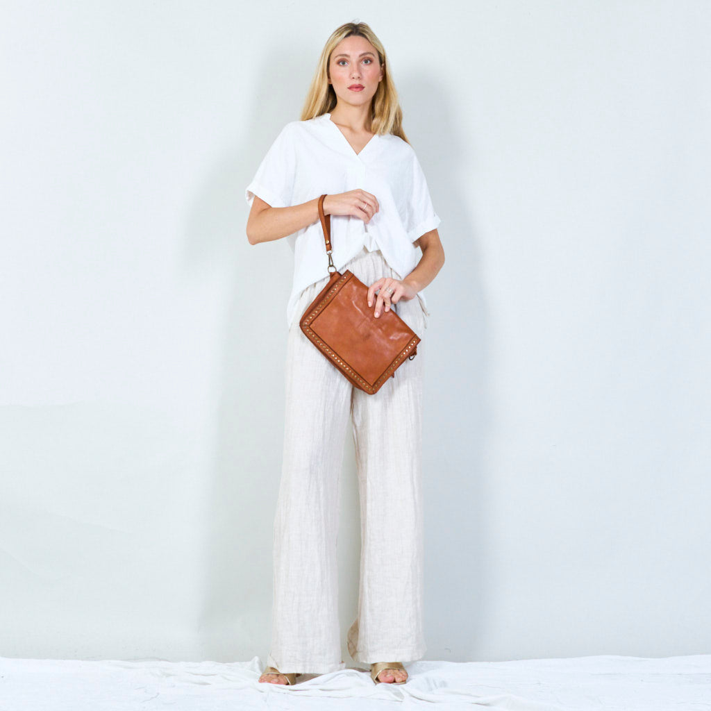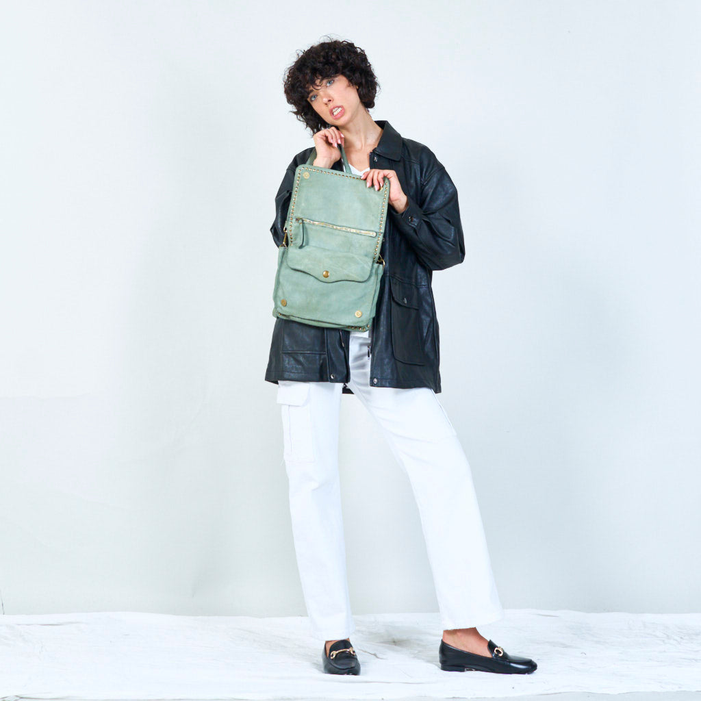 • Materiāls: Mazgāta un ar apģērbu krāsota teļa āda