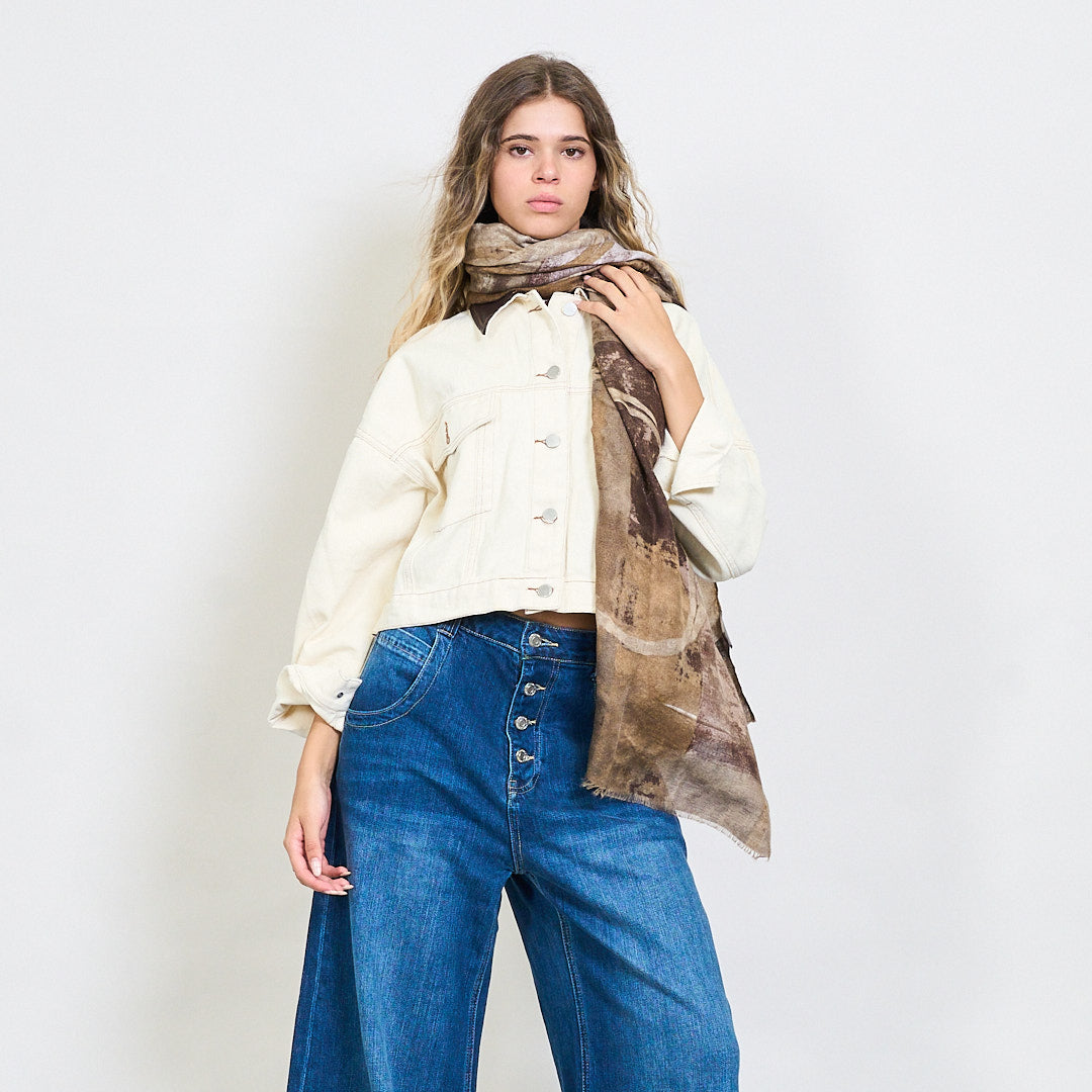 Zemes tonis abstrakts mazgāšanas drukas šalles vairumtirdzniecība