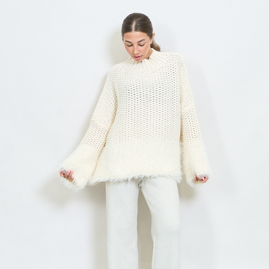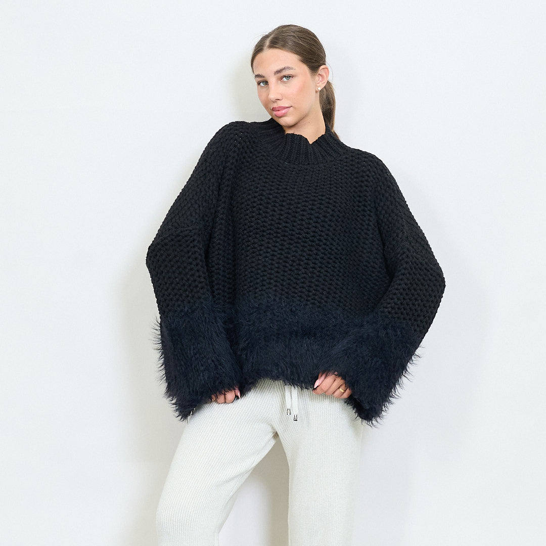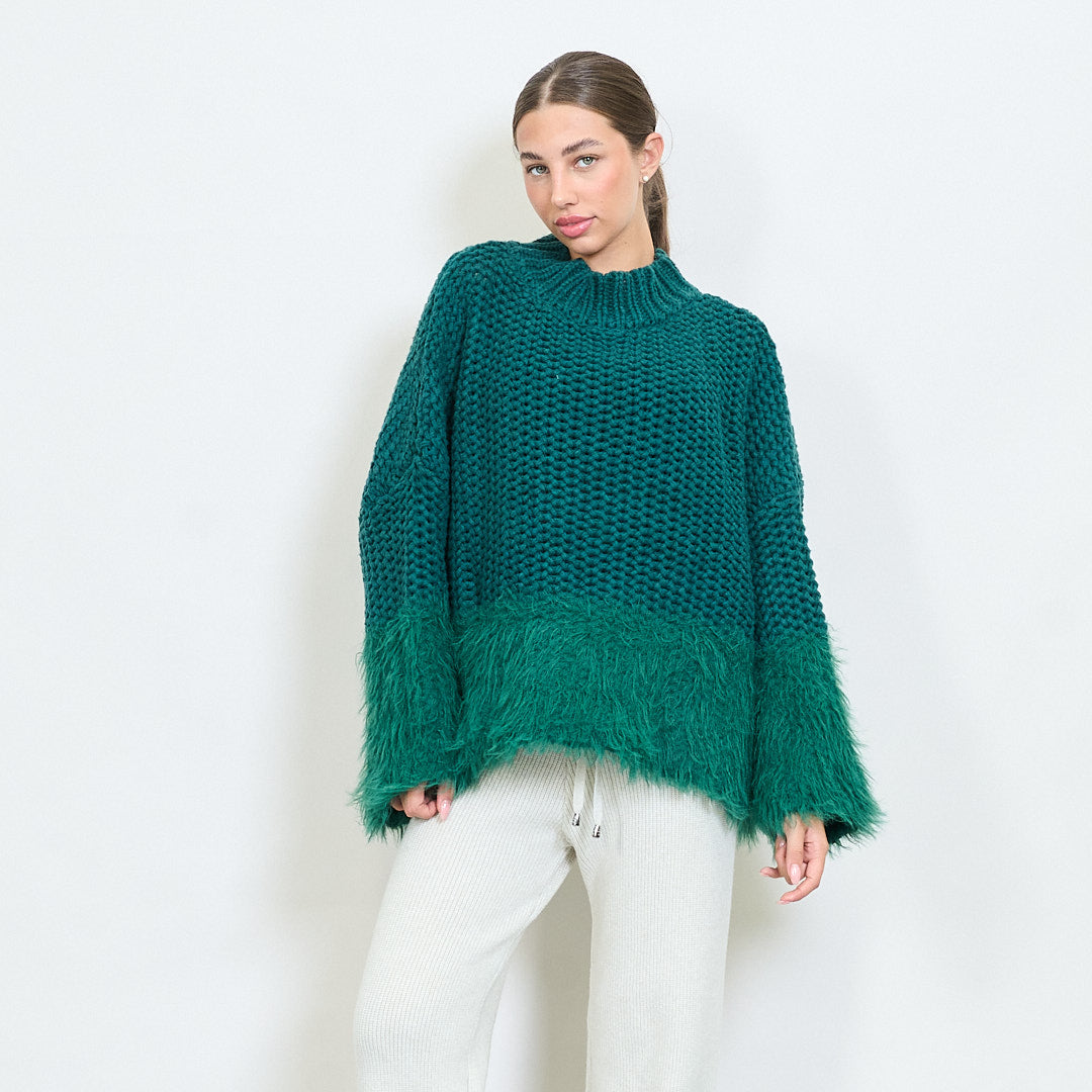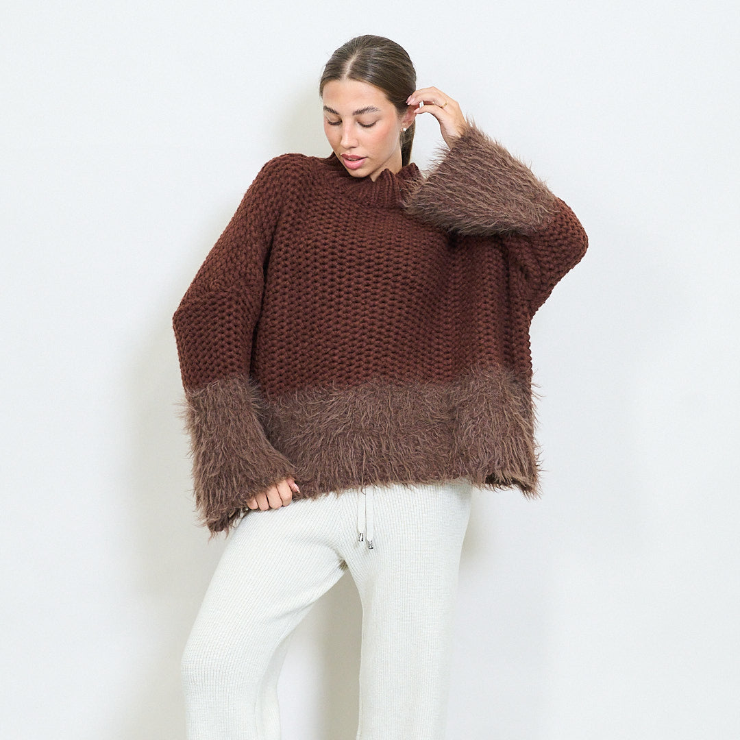 Riecošs teksturēts adīts džemperis ar pūkainu apakšmalu un aproces vairumtirdzniecībā