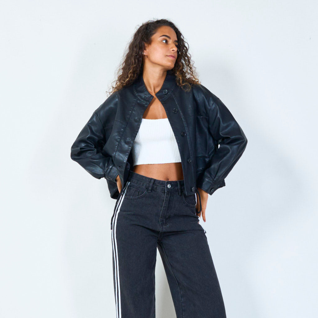 Statīva apkakles ādas jaka ar auklas apakšmalu vairumtirdzniecību