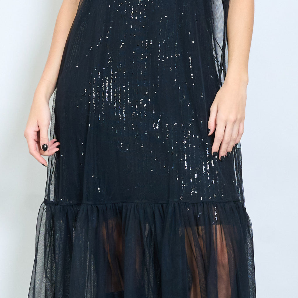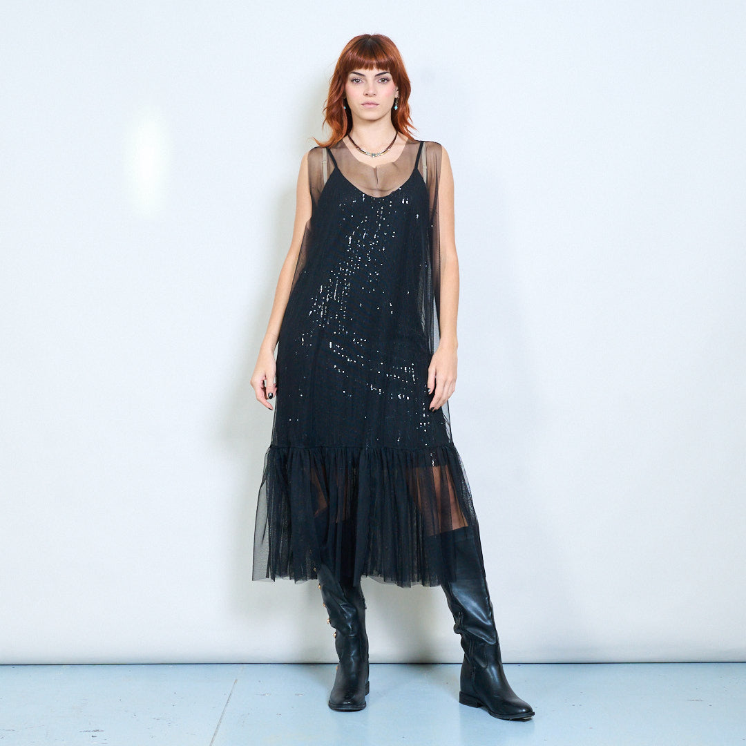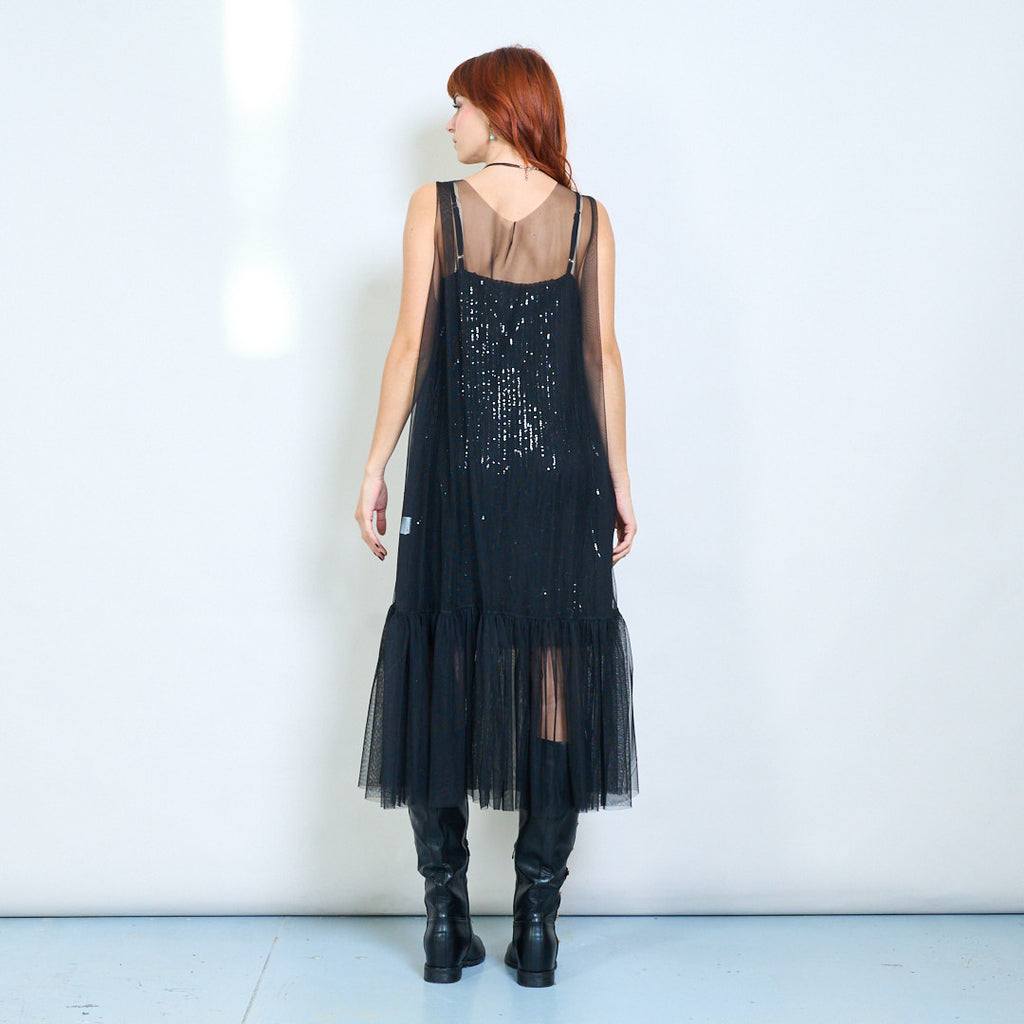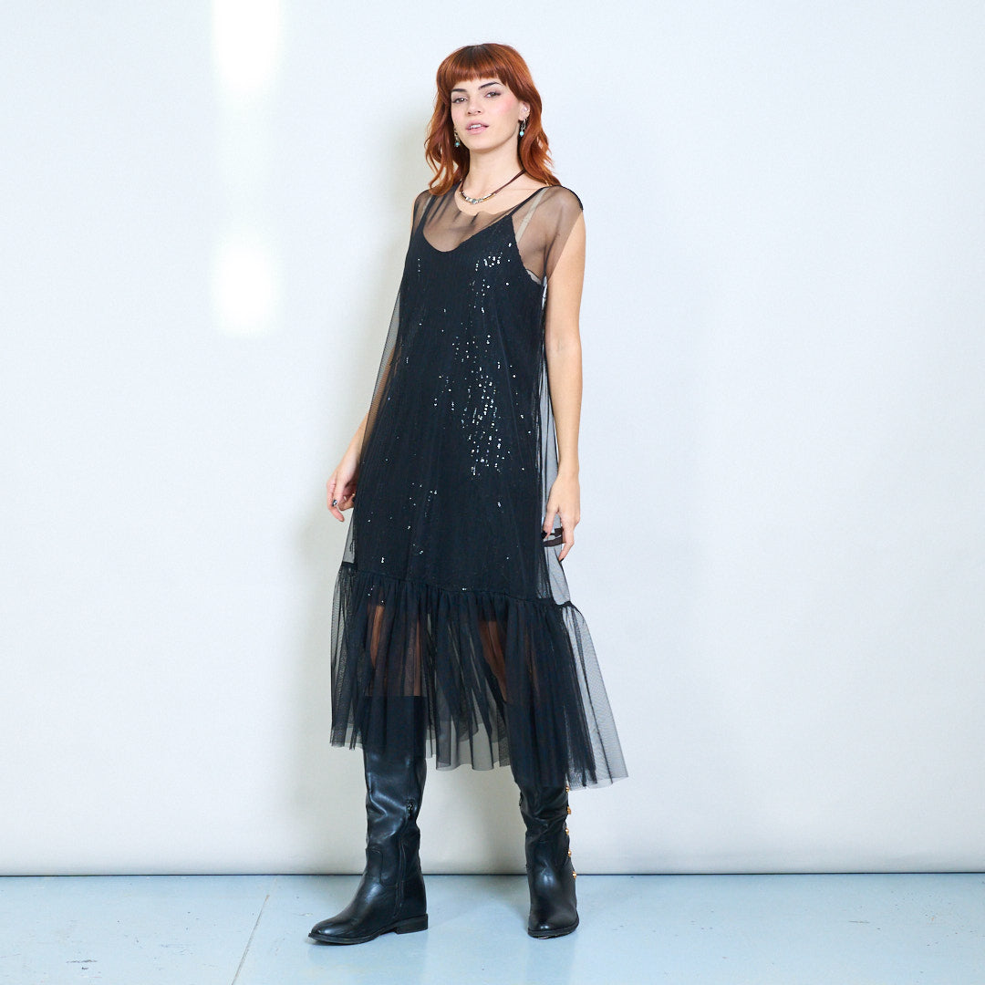 Caurspīdīga tīklveida kleita bez piedurknēm ar bārkstīm