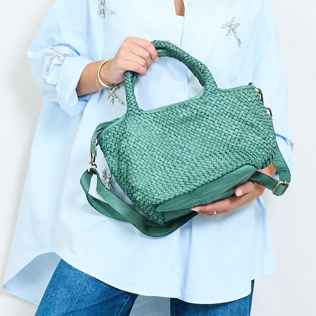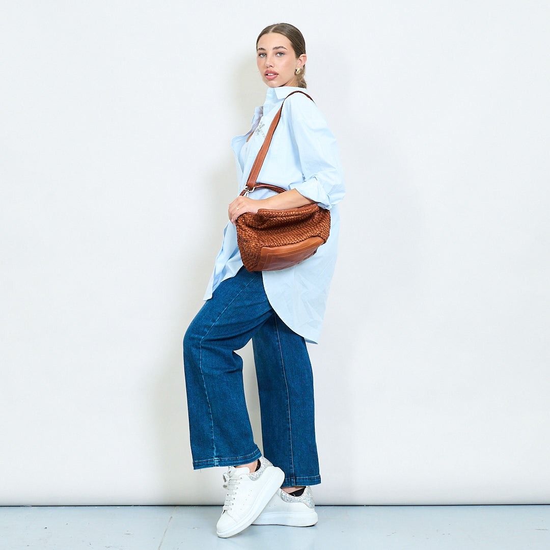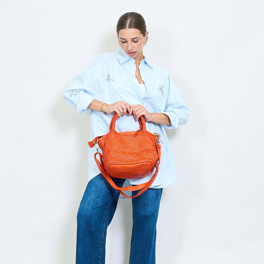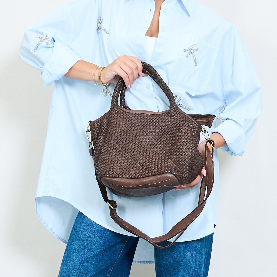 Austa ādas rokassoma ar īsiem rokturiem un siksnu vairumtirdzniecību