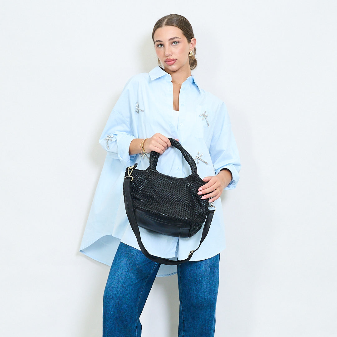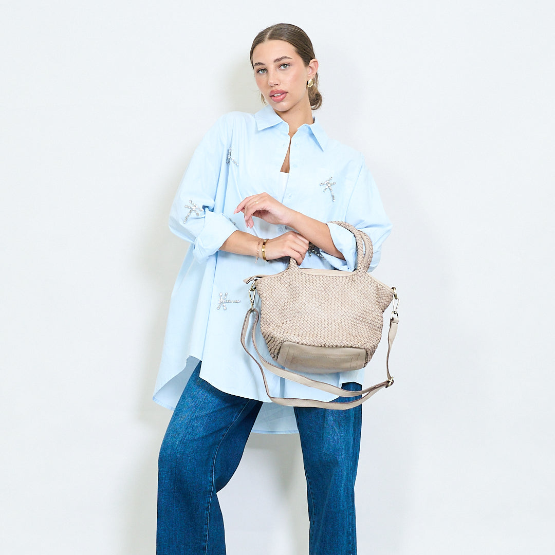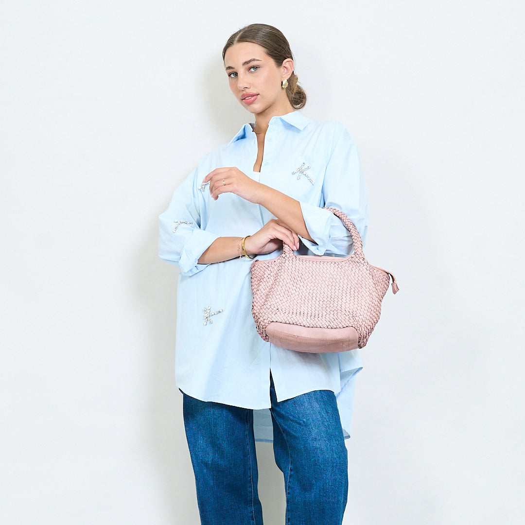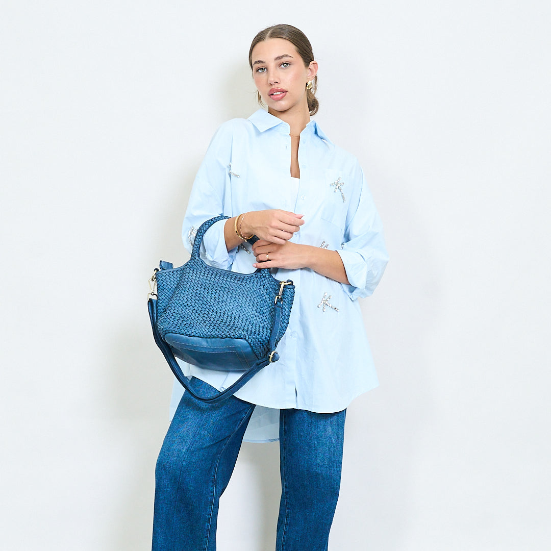 Austa ādas rokassoma ar īsiem rokturiem un siksnu vairumtirdzniecību