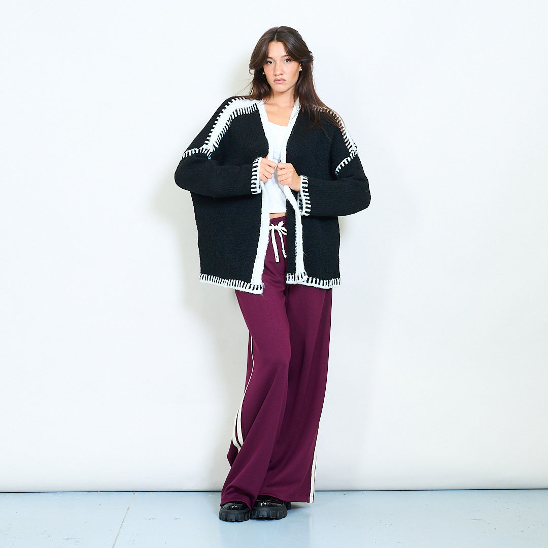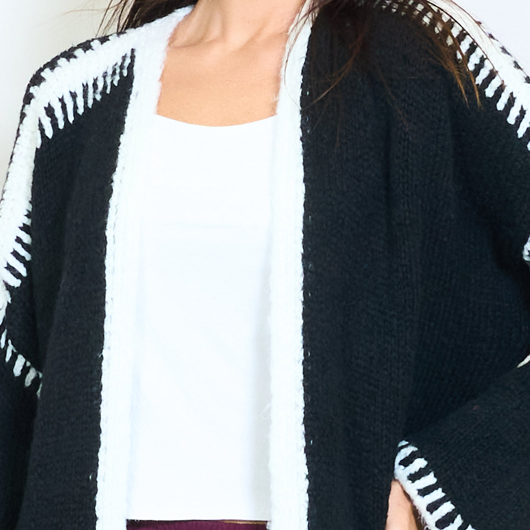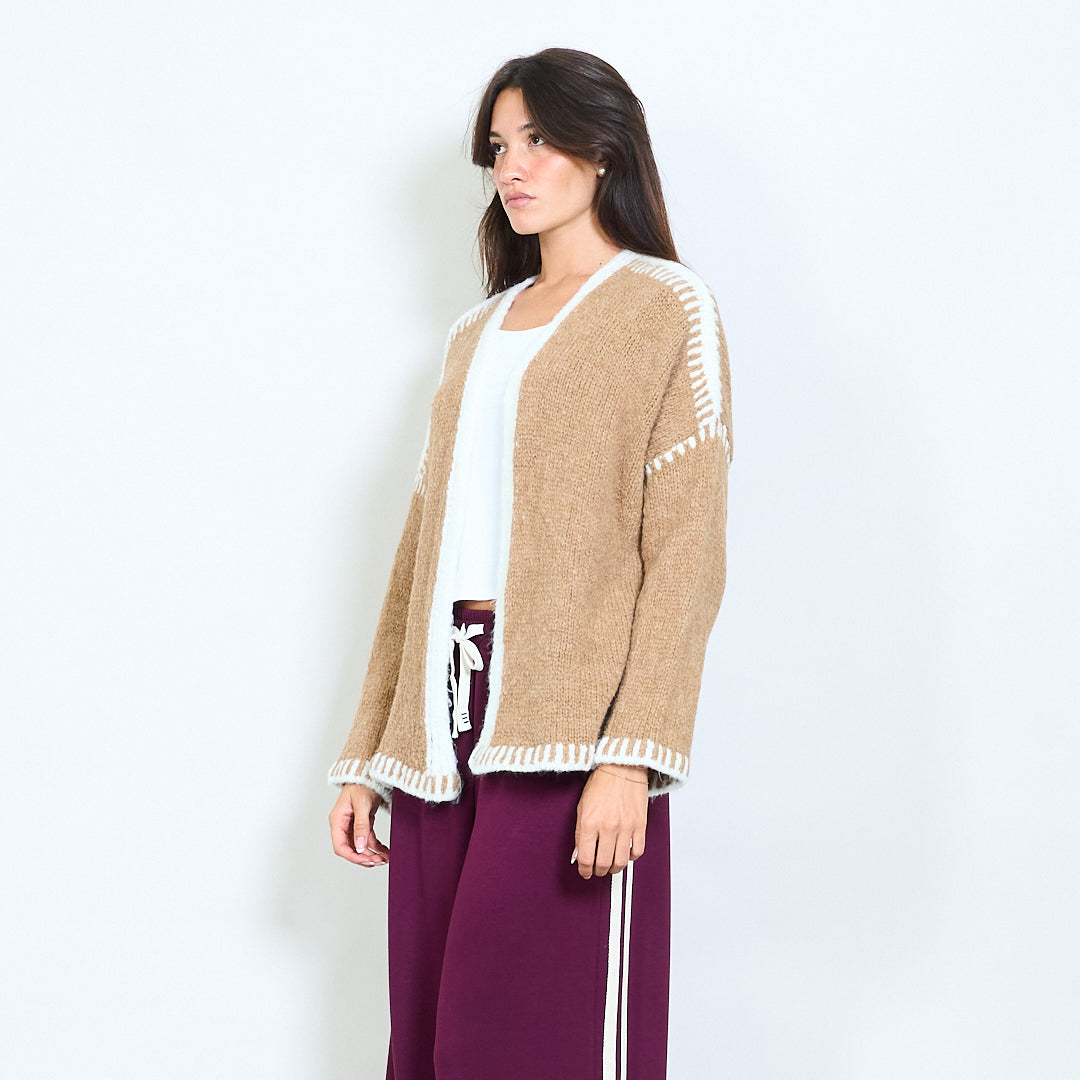 Atveriet priekšējo adītu jaku ar kontrasta apdares vairumtirdzniecību