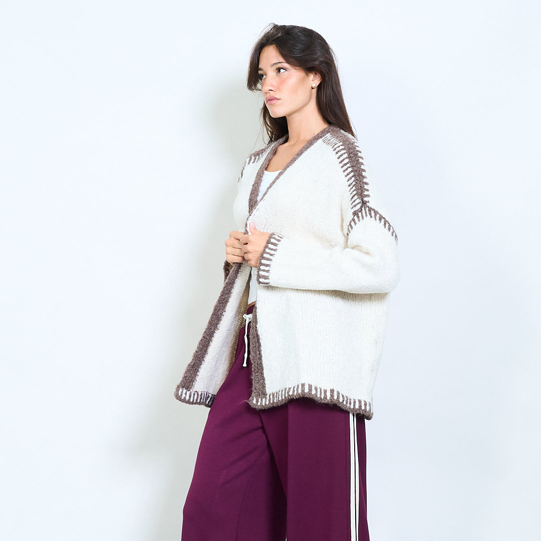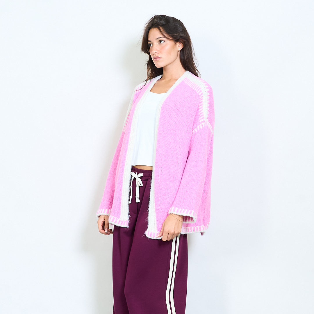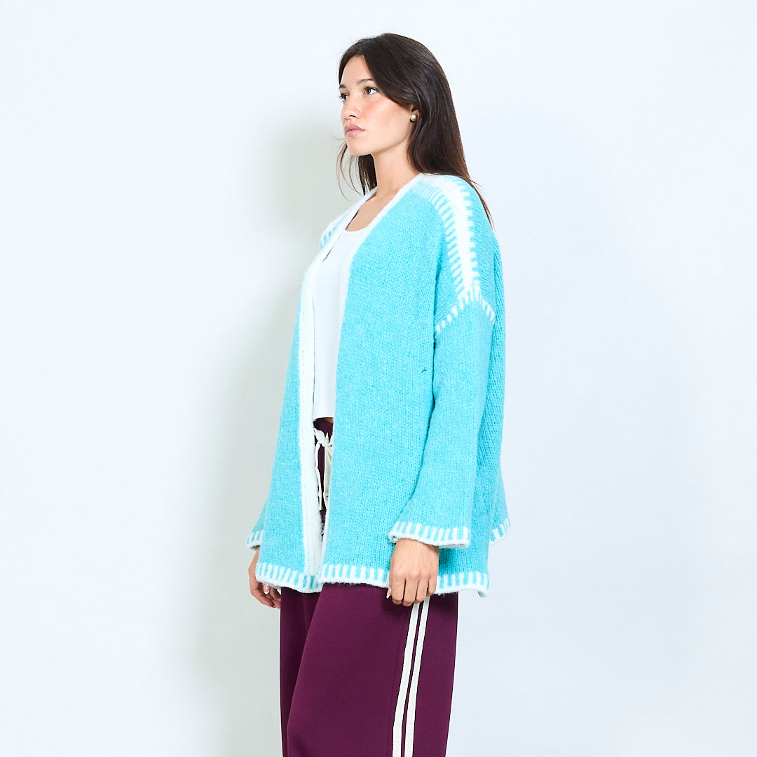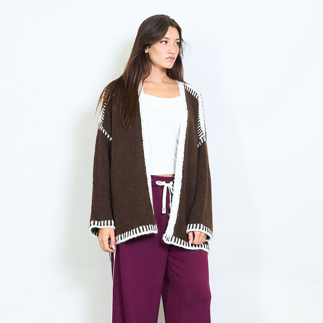 Atveriet priekšējo adītu jaku ar kontrasta apdares vairumtirdzniecību
