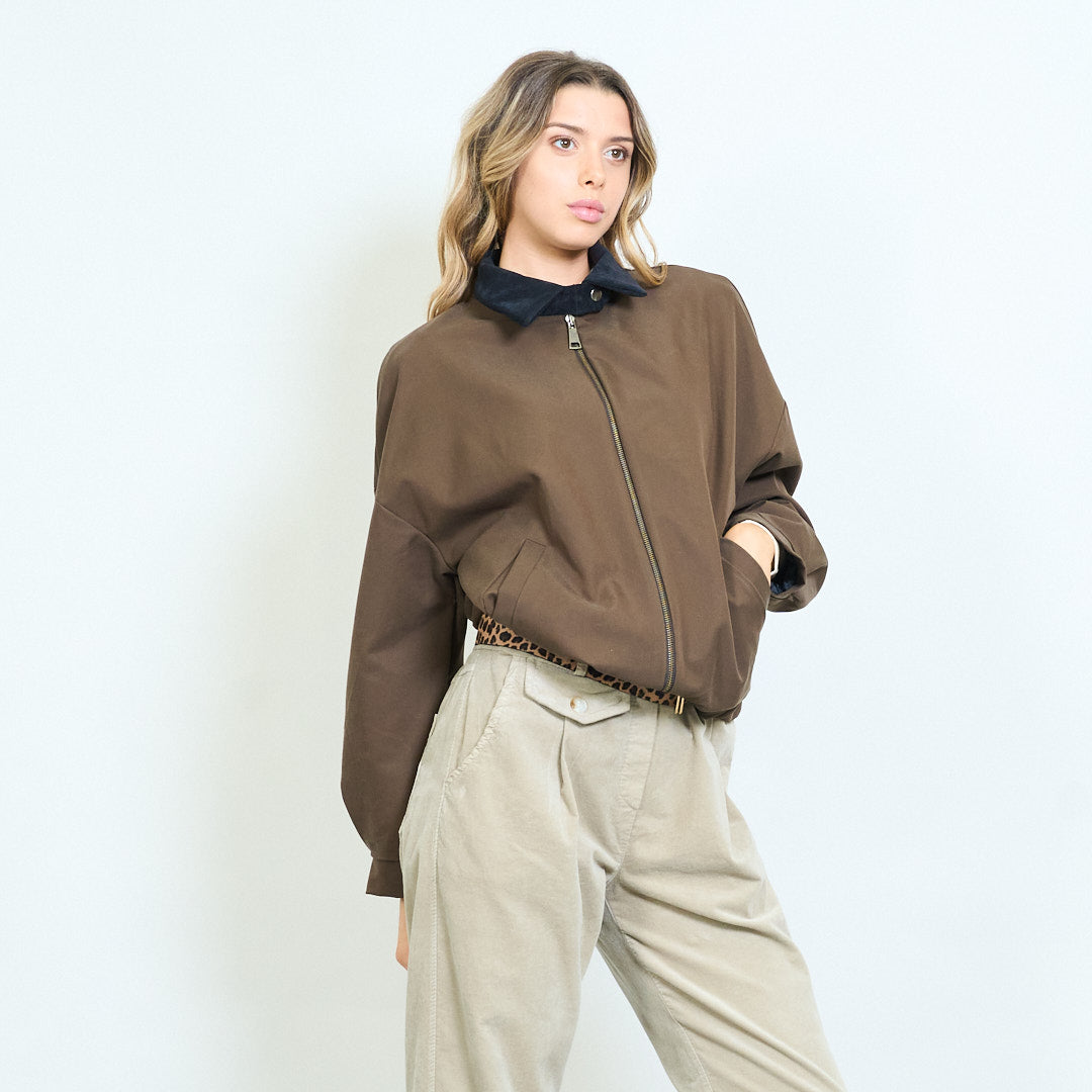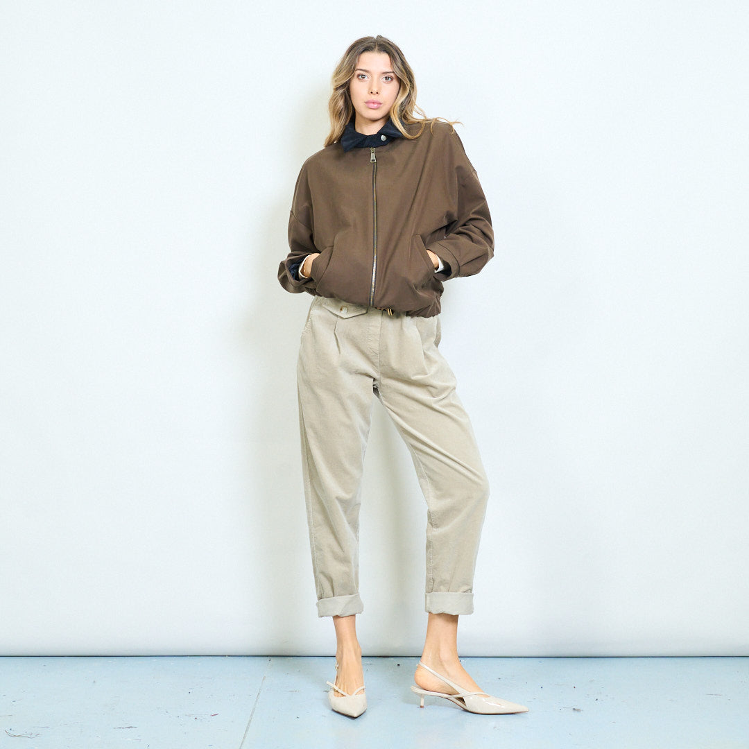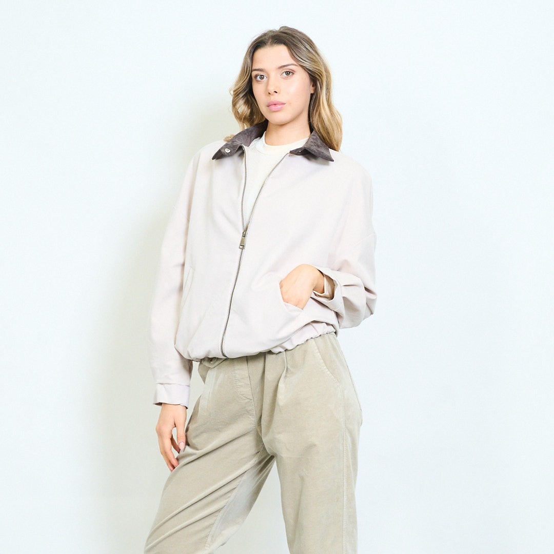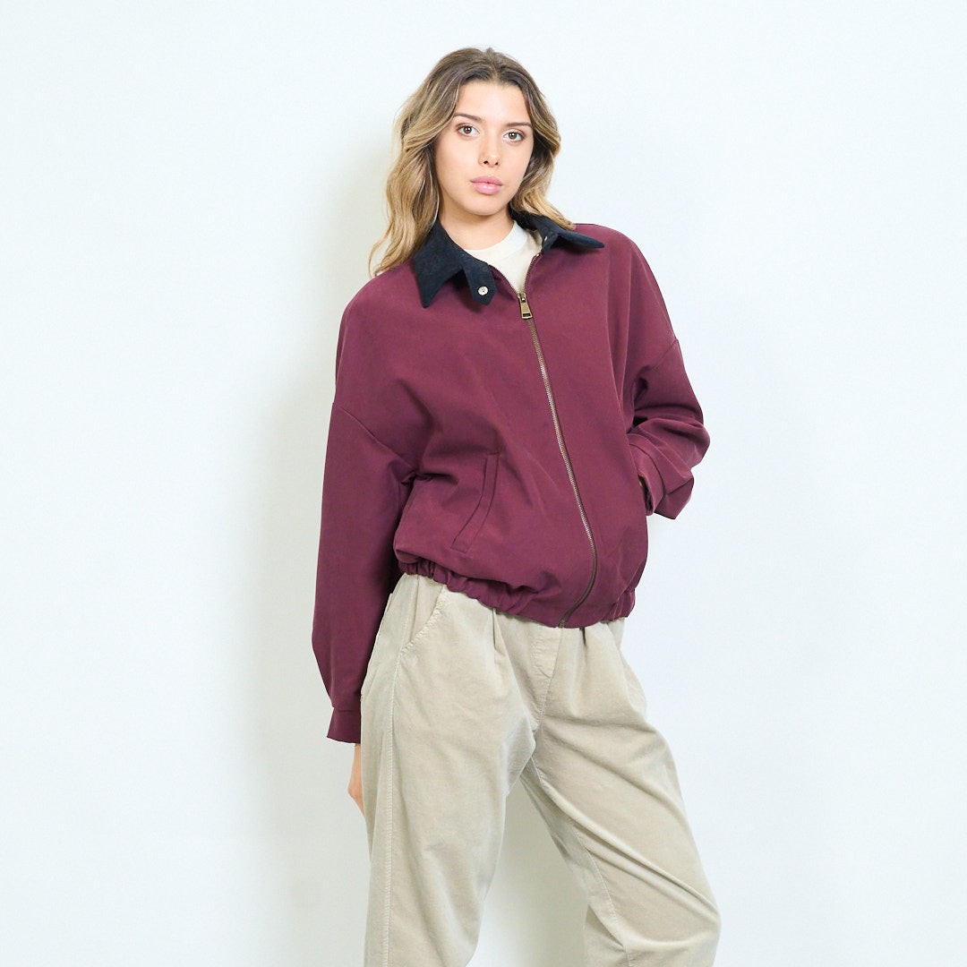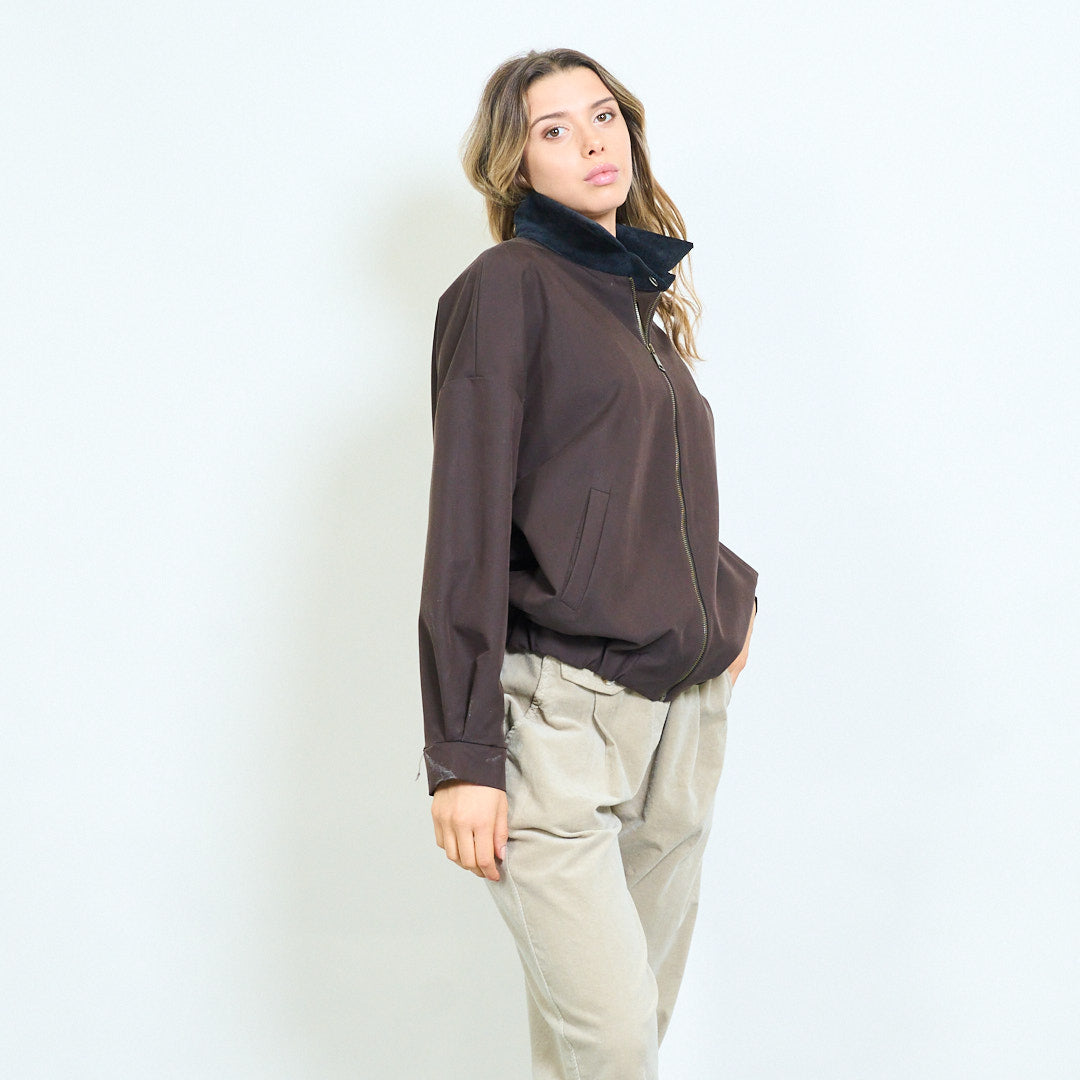 Minimālisma rāvējslēdzēja jaka ar kontrasta apkakles detaļu vairumtirdzniecību