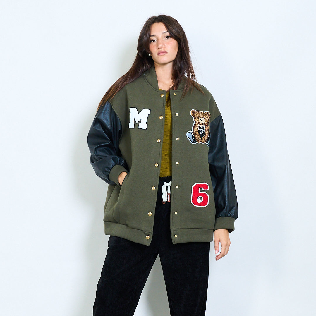 Universitātes jaka ar rotaļu plākstera vairumtirdzniecību