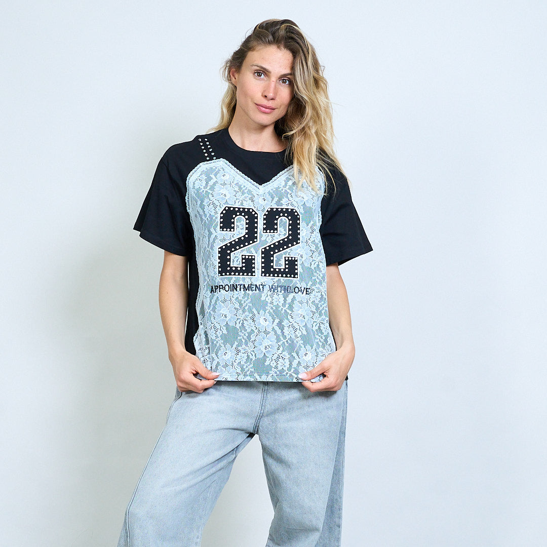 "22 iecelšana ar Love" mežģīņu paneļa studiju grafiskā T-krekla vairumtirdzniecība