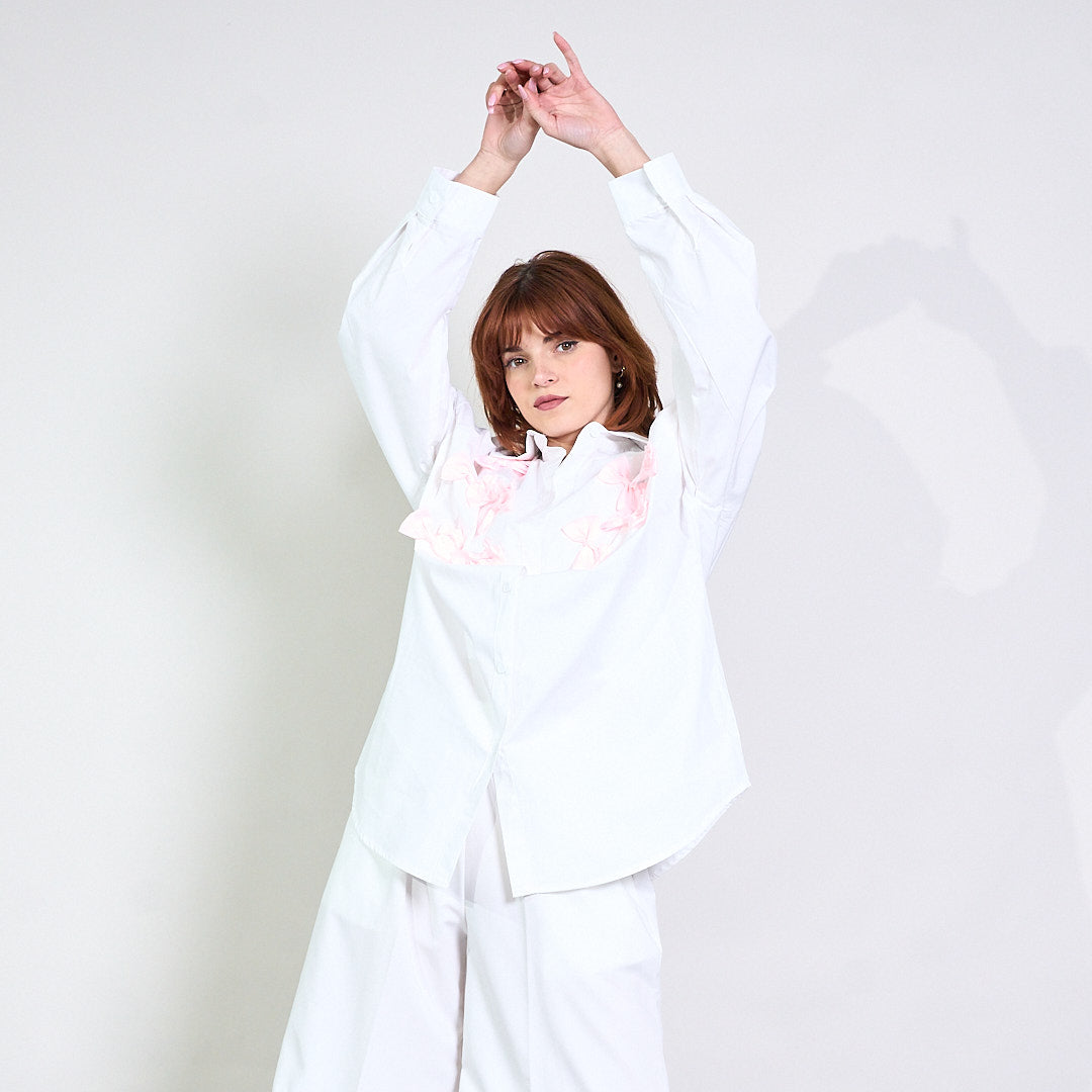 3d rozā priekšgala aplikācija lielizmēra poplin krekla vairumtirdzniecība
