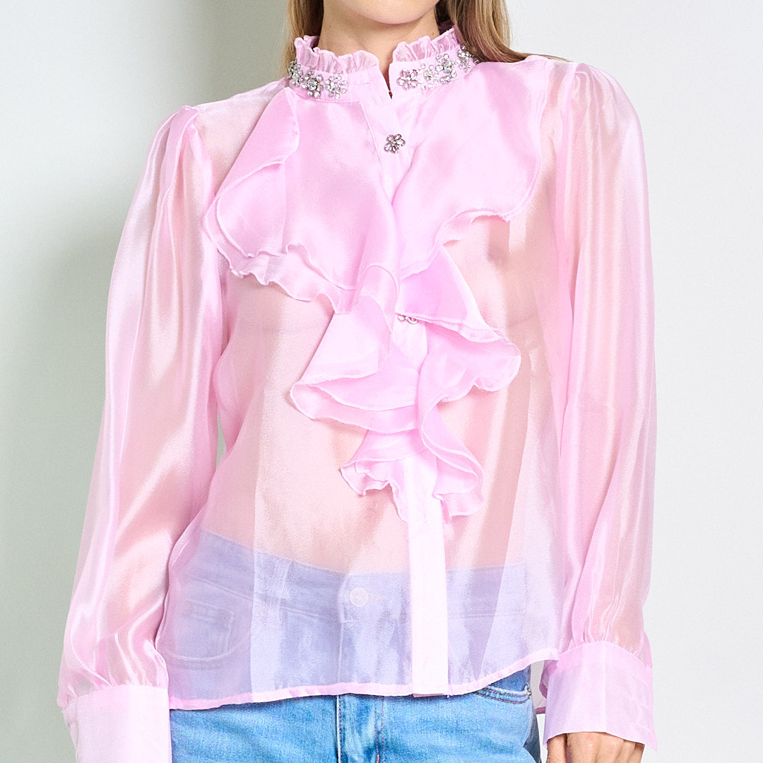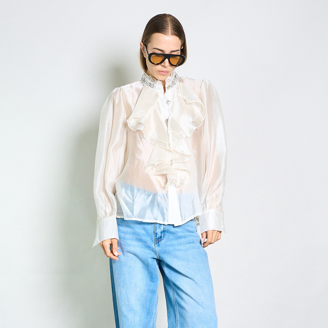 Milzīga ruffle priekšējā blūze ar izrotātu apkakles vairumtirdzniecību