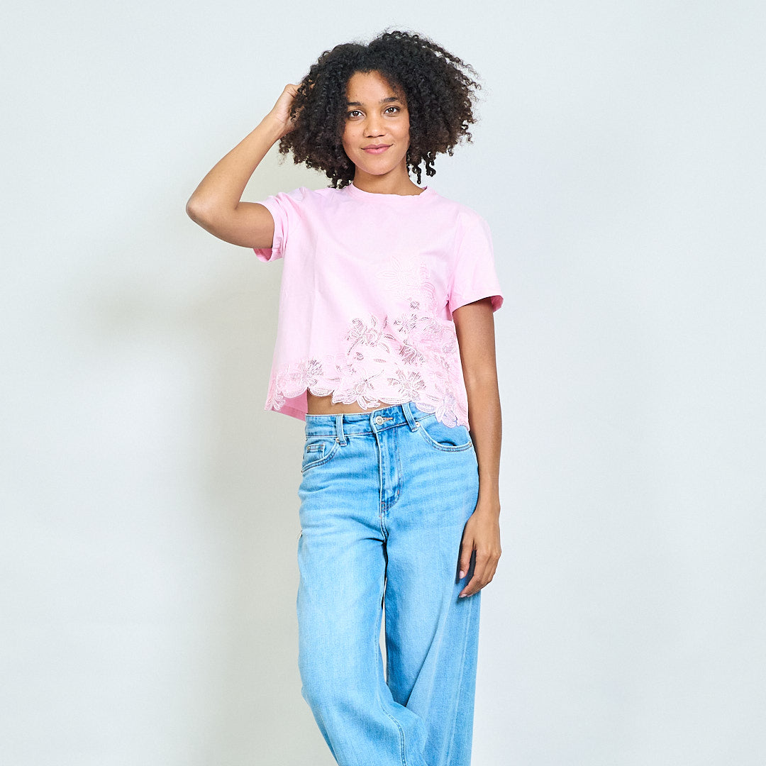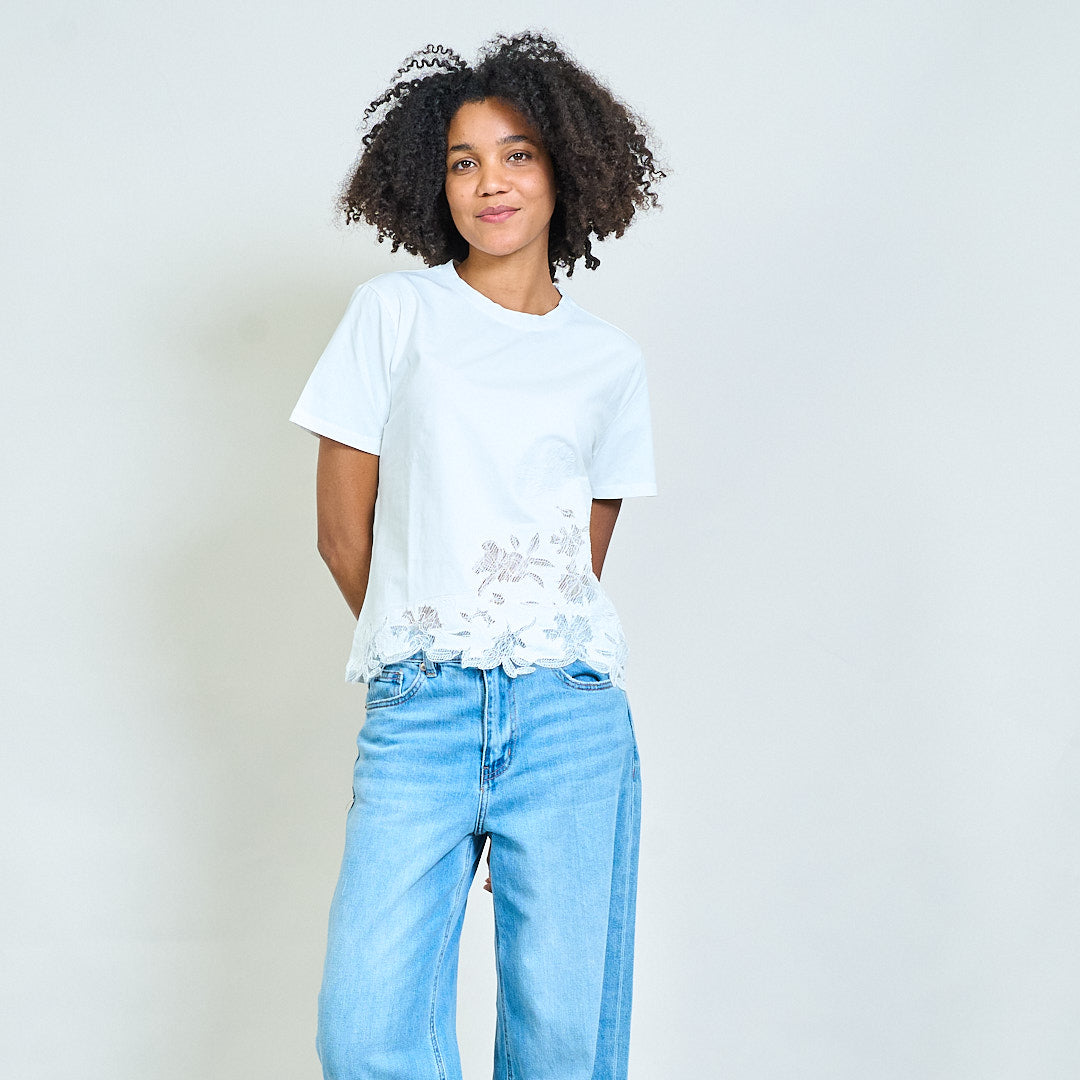 Ziedu izšuvumi, kas apmetušies ar zemu t-kreklu vairumtirdzniecību