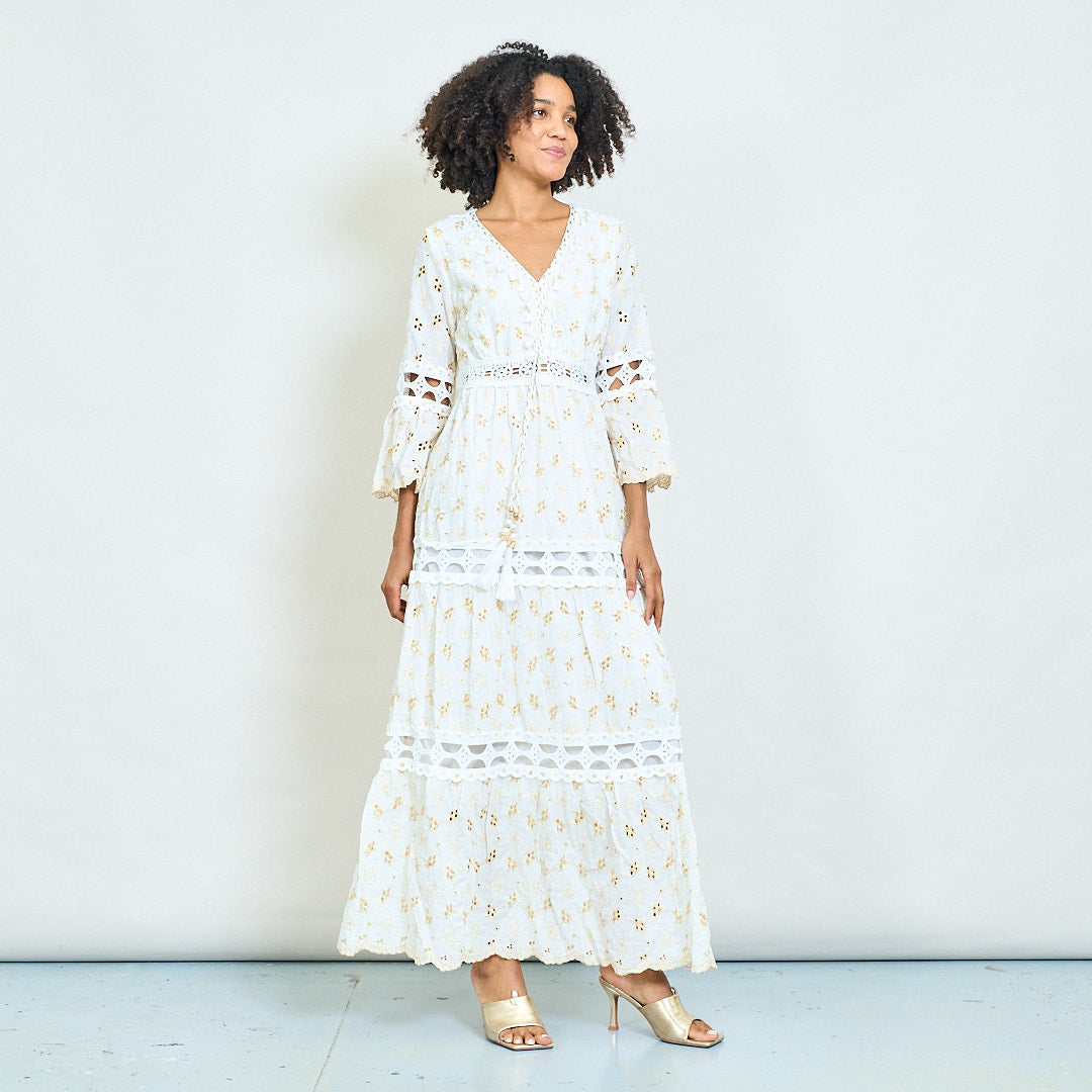 Ziedu izšuvumu mežģīņu panelis Maxi kleitas vairumtirdzniecība