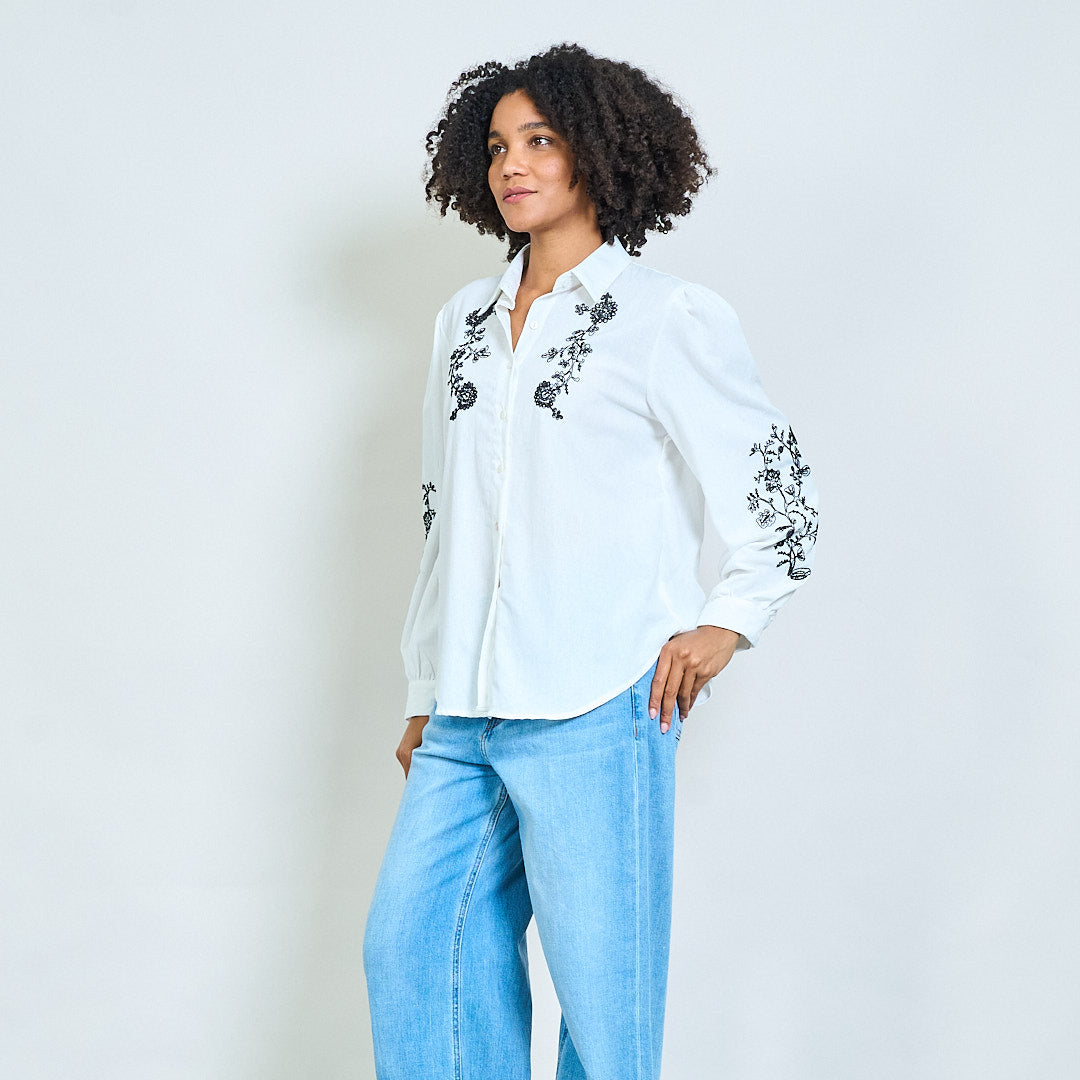 Ziedu vīnogulāju izšūta puff piedurknes pogas krekls Vairumtirdzniecība