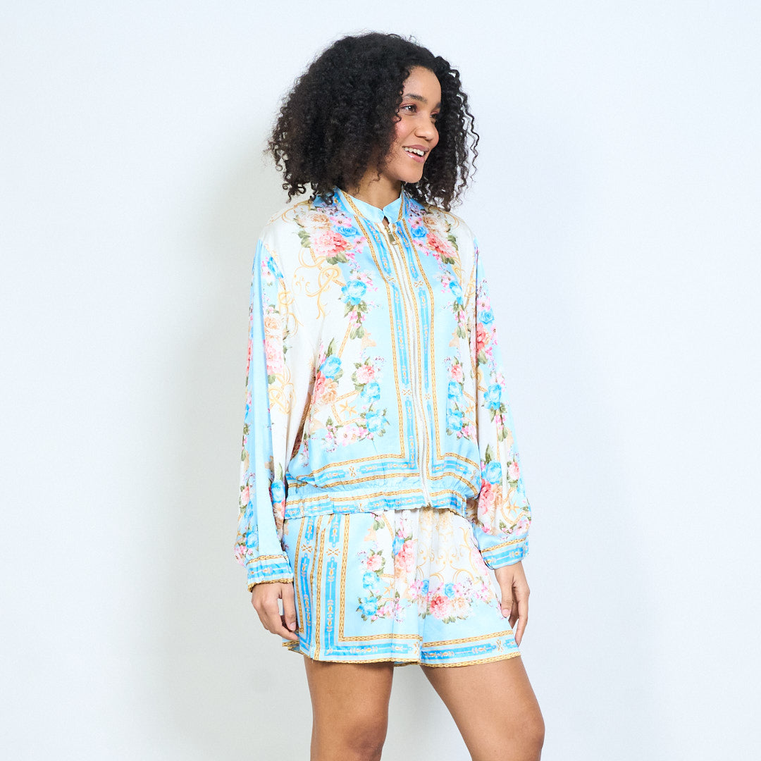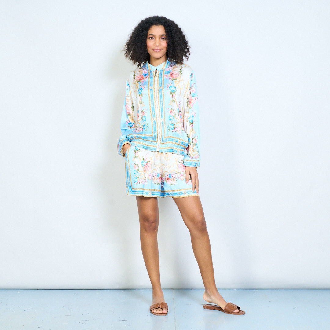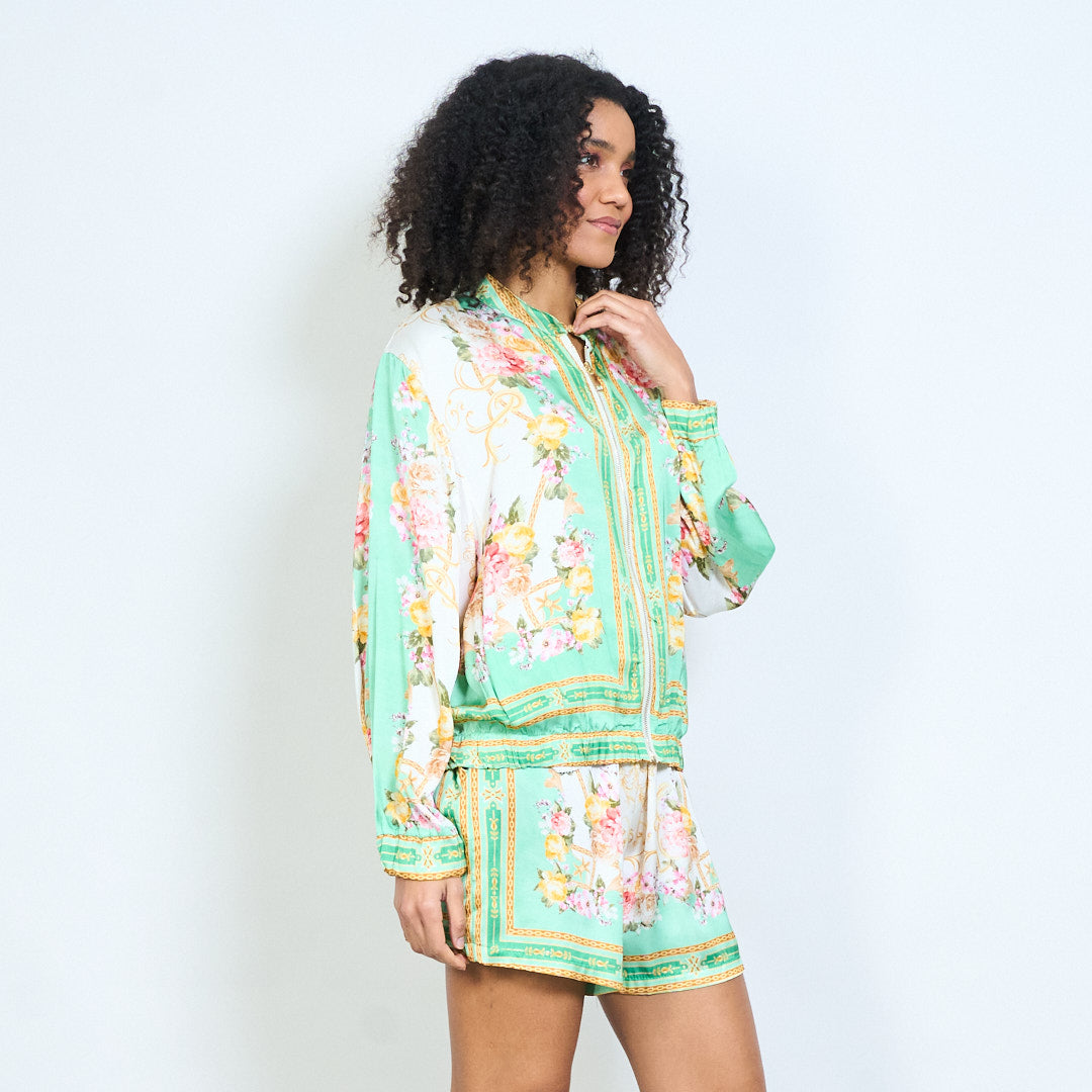 - Viegla jaka ar elegantu ziedu un ķēdes apdruku dizainu