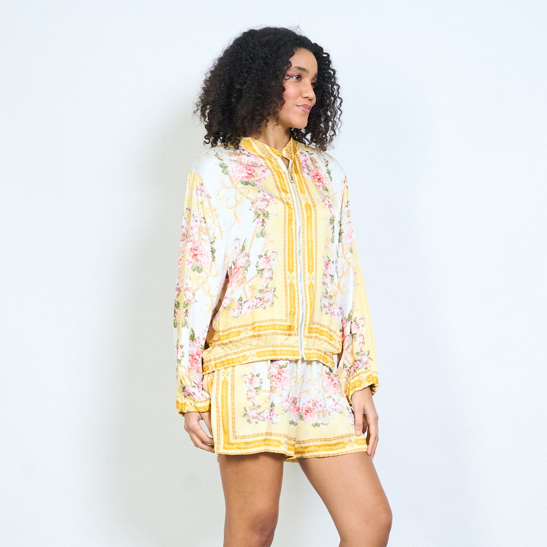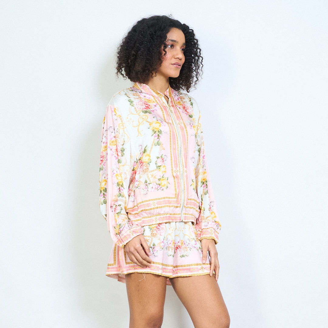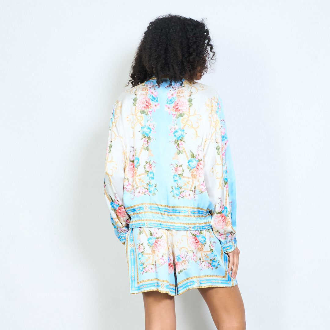 - Viegla jaka ar elegantu ziedu un ķēdes apdruku dizainu