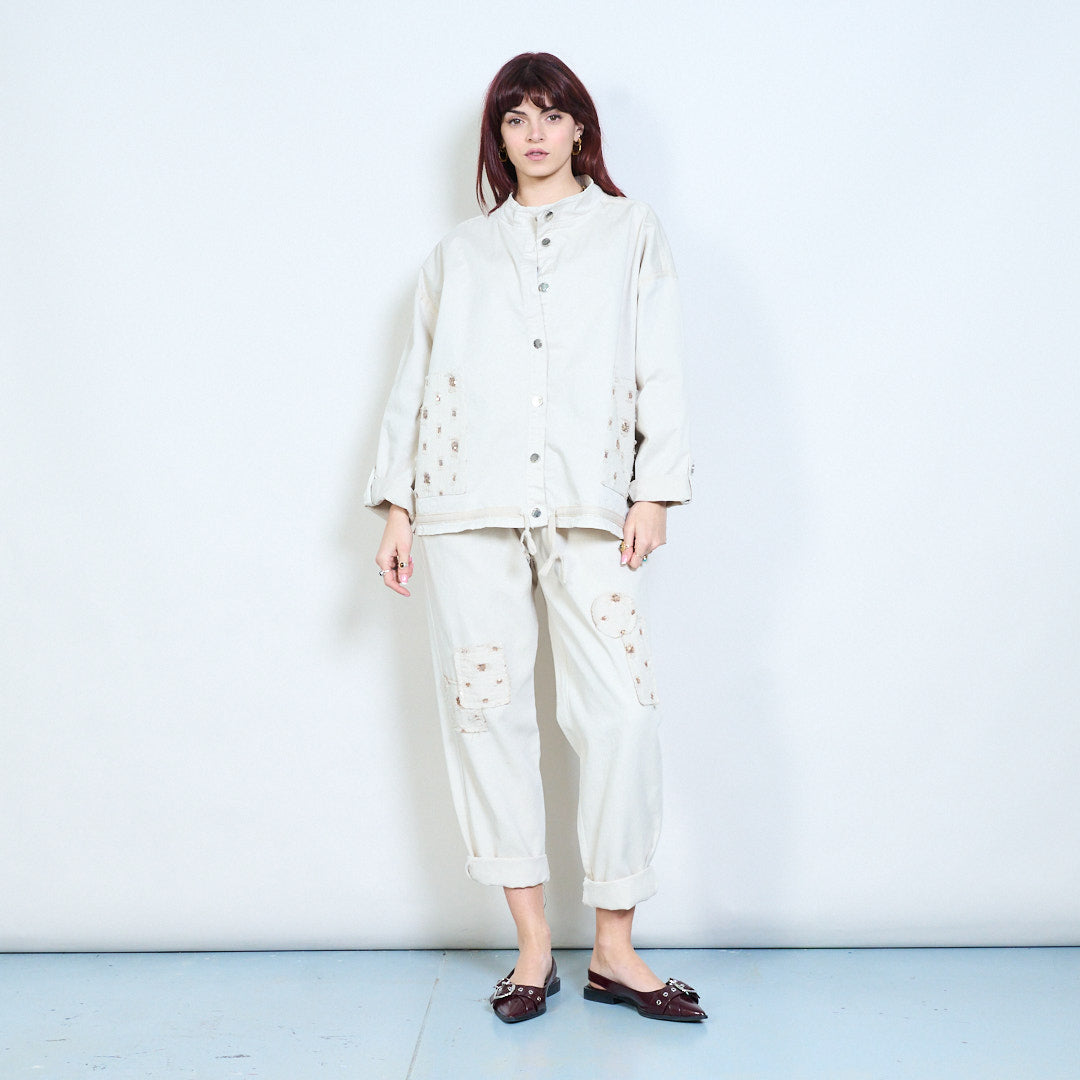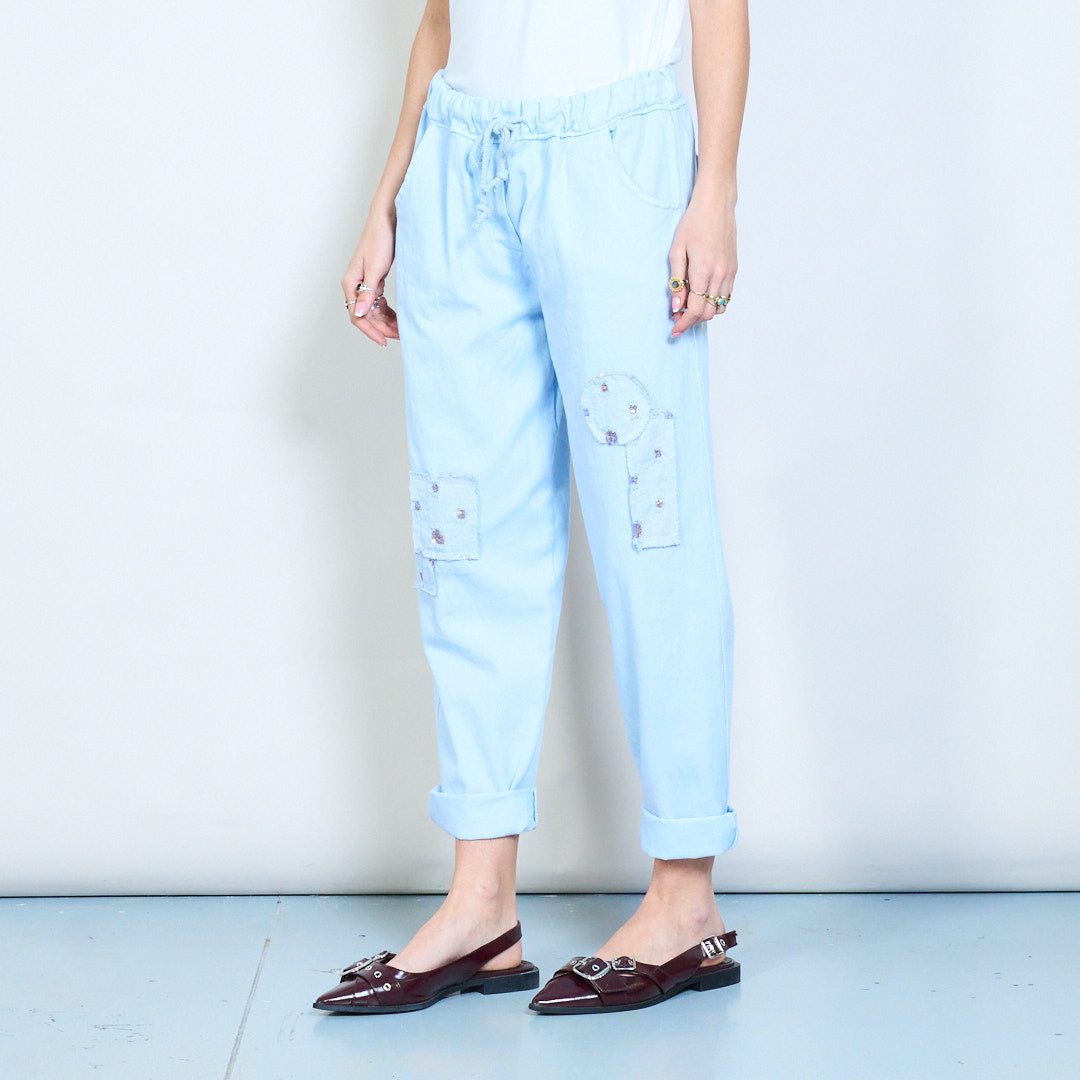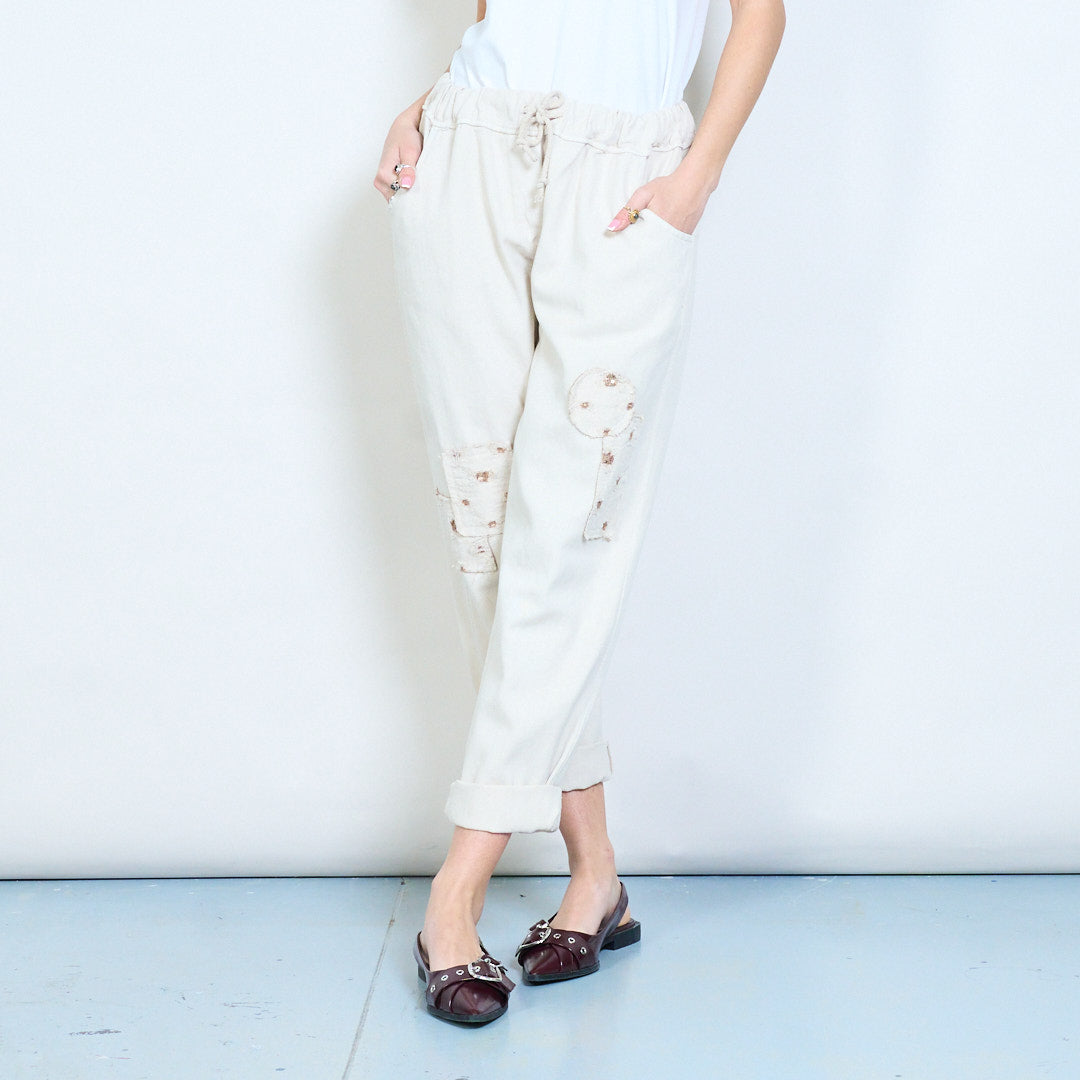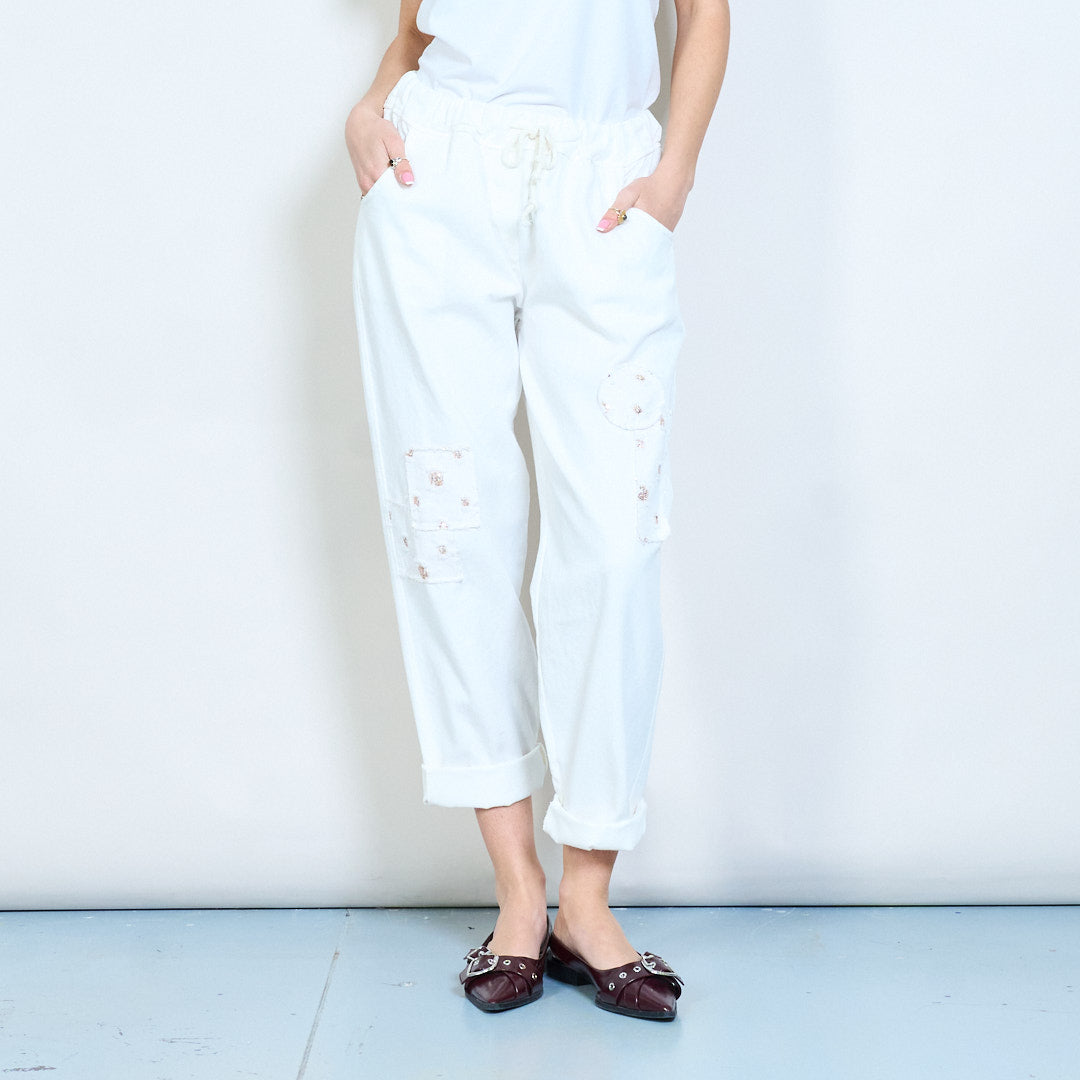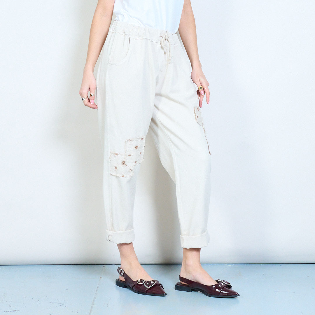 Apgrūtināta plākstera detaļa savelkamās bikses līdz potītēm vairumtirdzniecība
