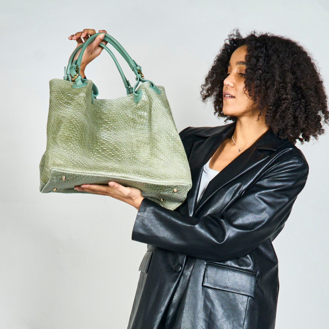 Austi teksturēti soma ar divkāršu rokturiem vairumtirdzniecībā