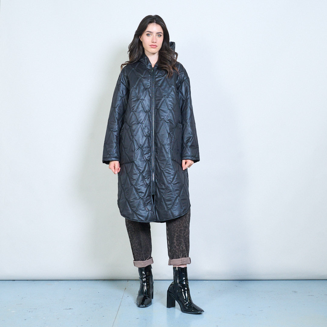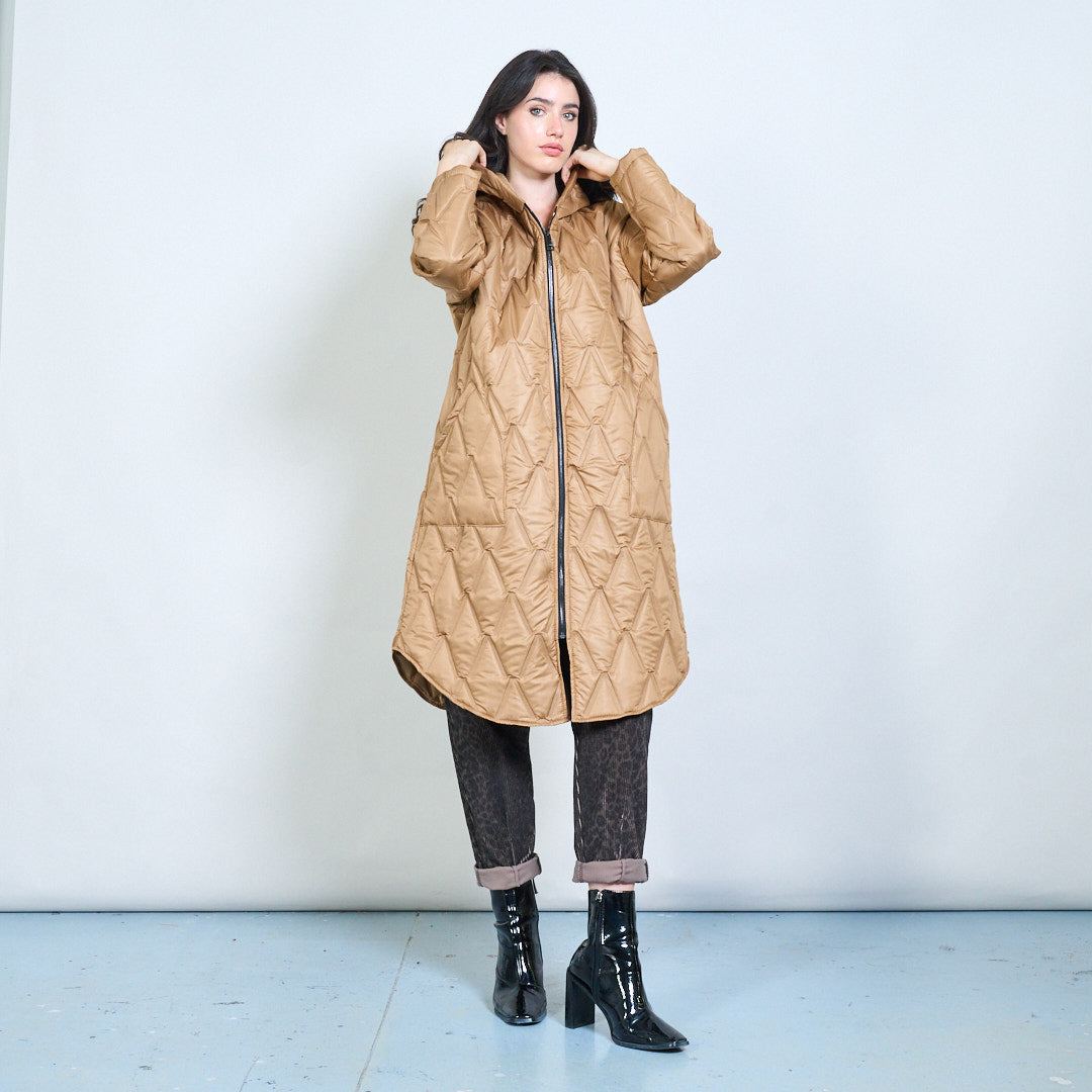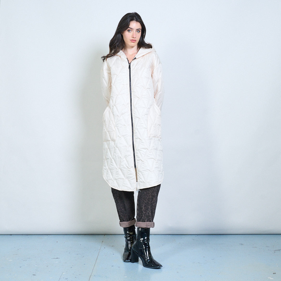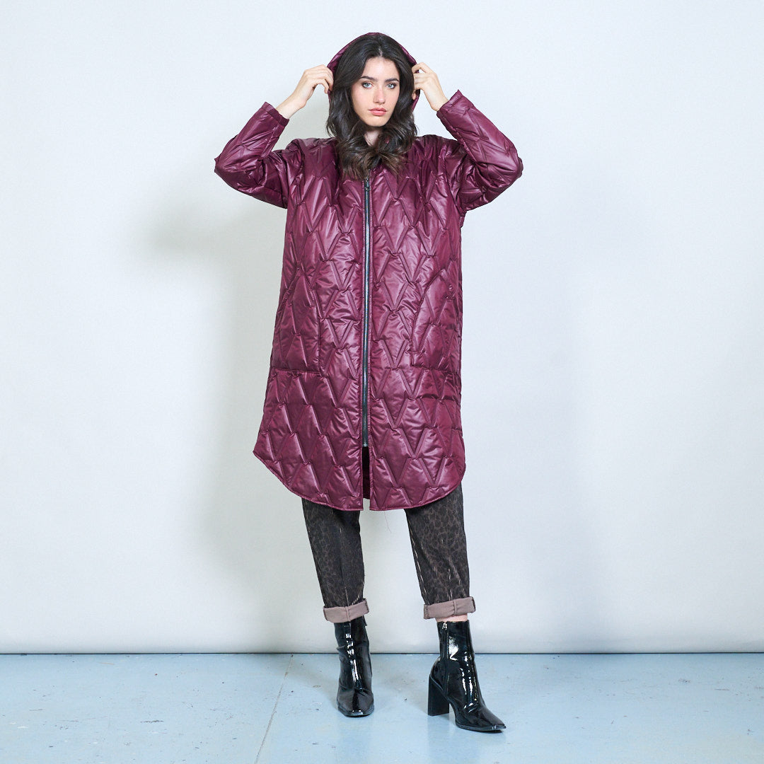 Dimanta vatēta kapuces gara līnijas rāvējslēdzēja mēteļa vairumtirdzniecība