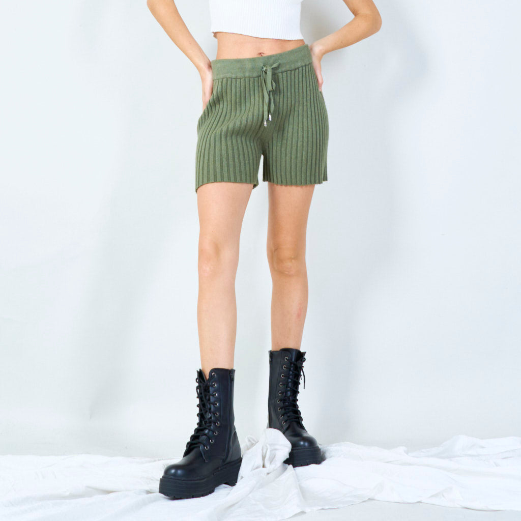 Rievoti adītie šorti ar auklas vidukļa vairumtirdzniecību