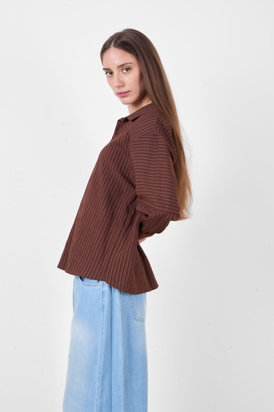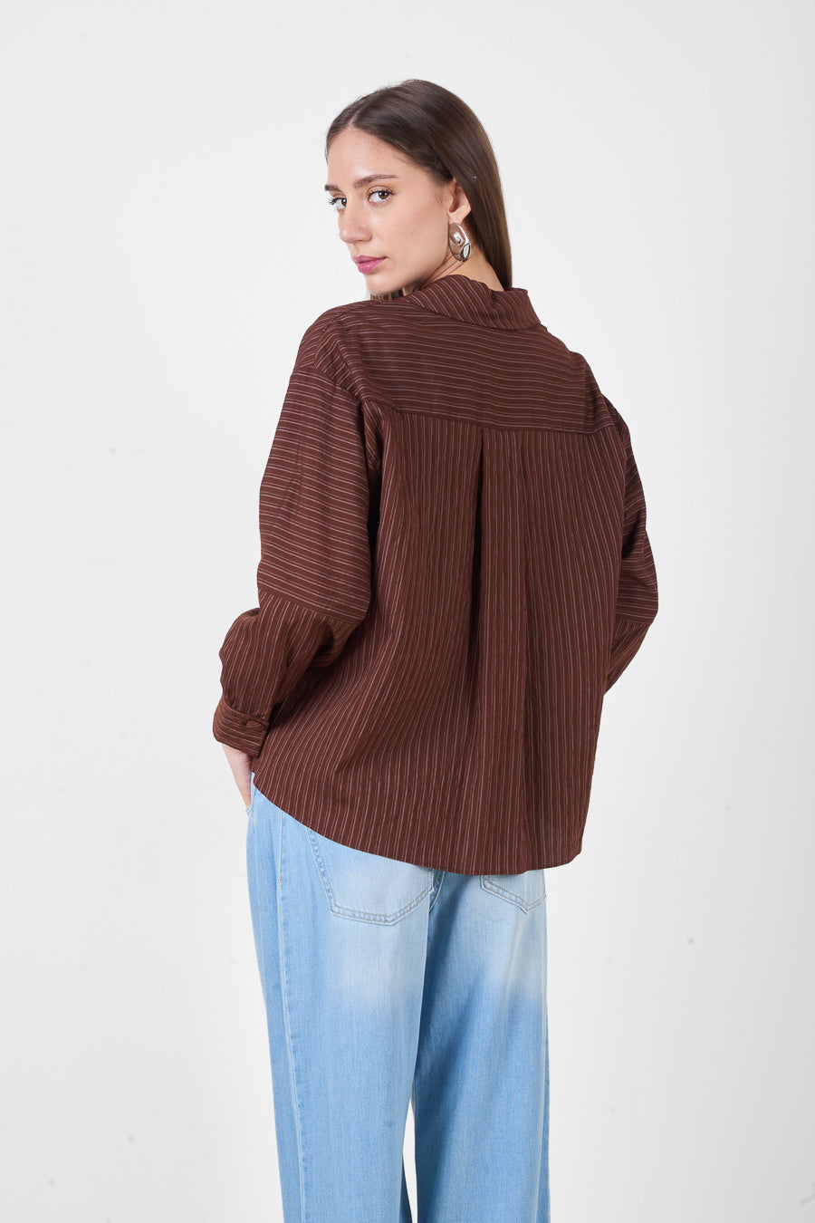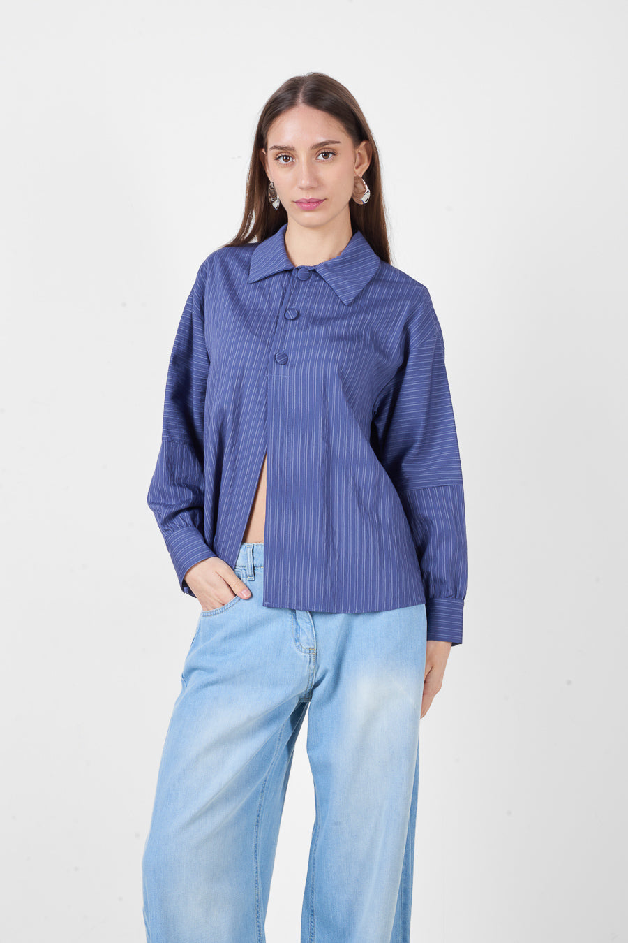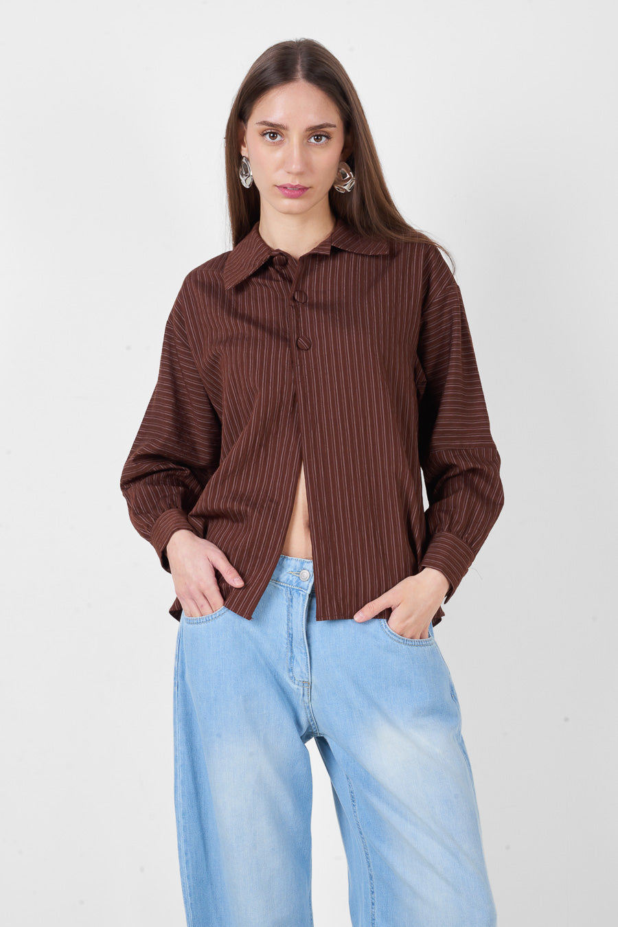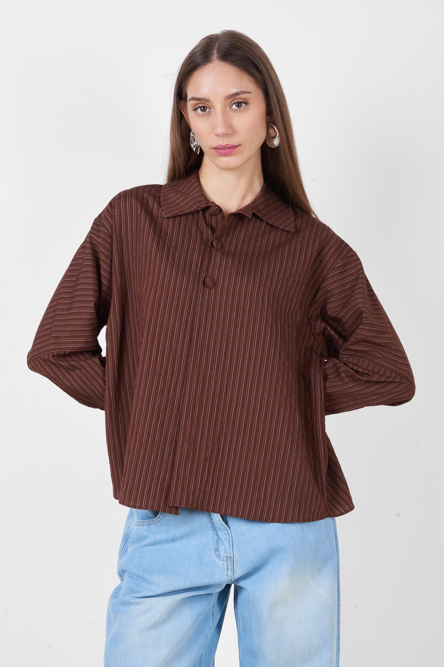 Svītrains drukāts pogas priekšējā apkakle ar garām piedurknēm atvieglinātas krekls vairumtirdzniecība