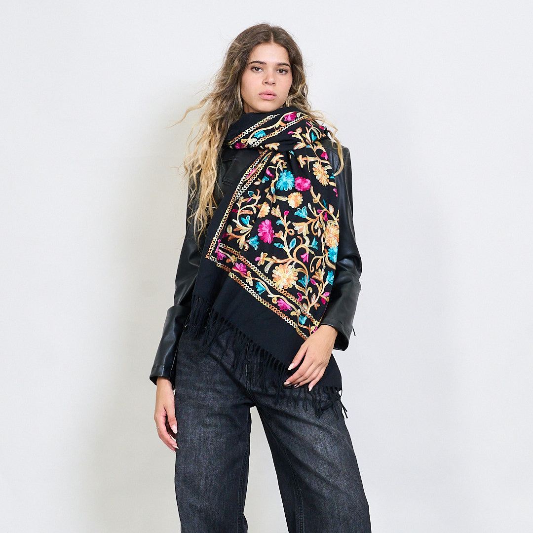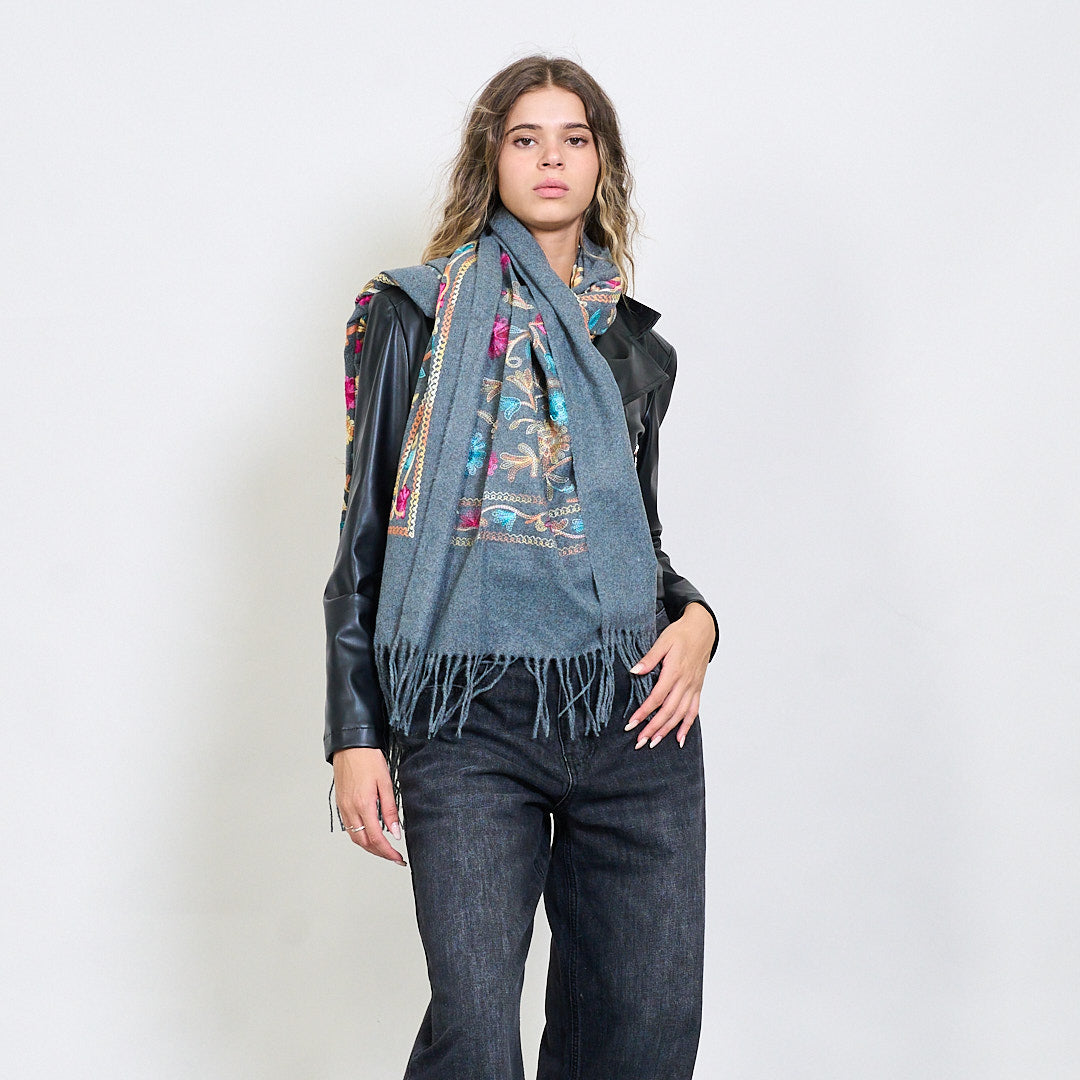 Botāniski izšūti ziedu robežas bārkstis šalles vairumtirdzniecība