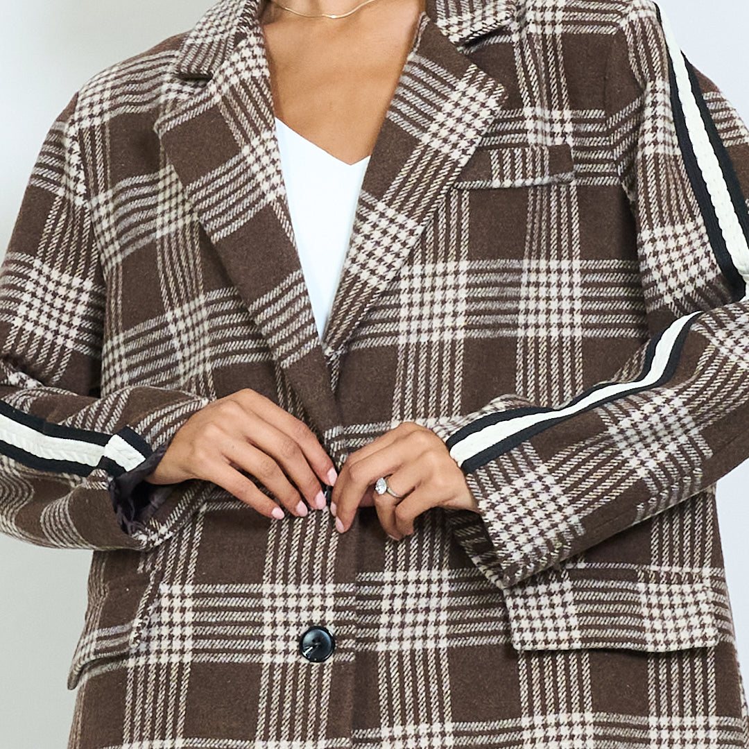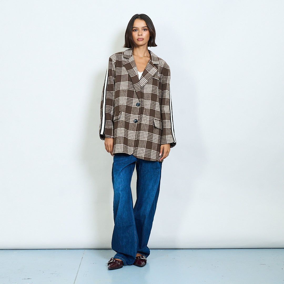 Pārbaudīts pielāgots žakete ar svītrainu piedurkņu detaļu vairumtirdzniecību
