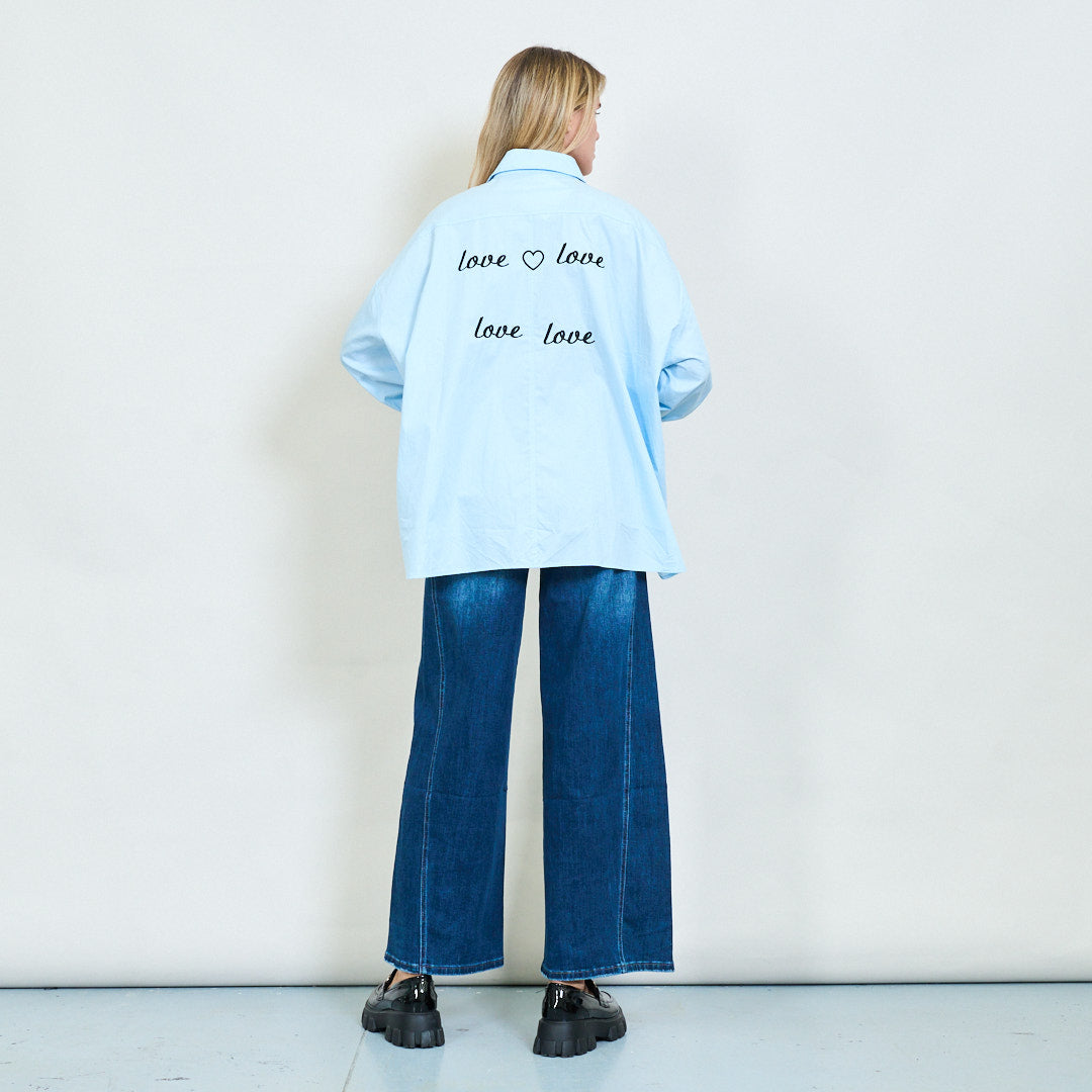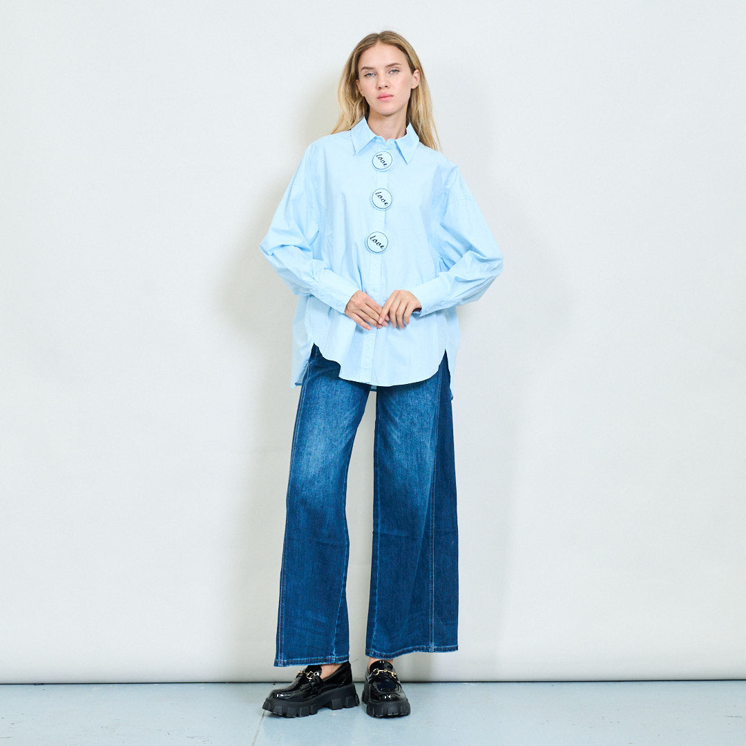 Pārmērīga krekls ar “Love” pogas detaļu vairumtirdzniecībā