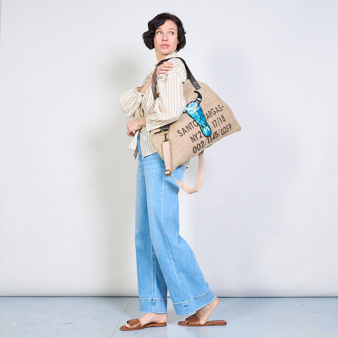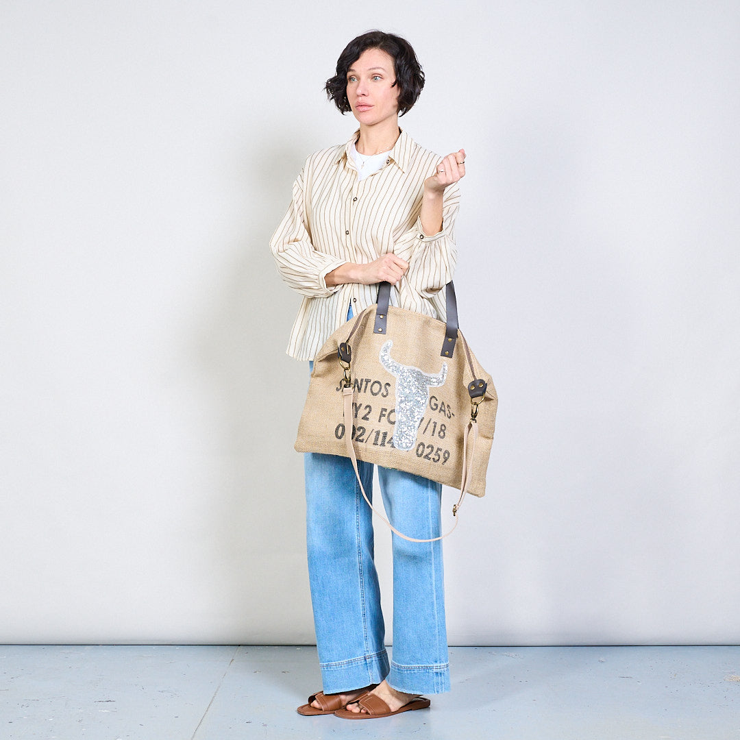 Sequin Bull Head Jute Tote Bag vairumtirdzniecība
