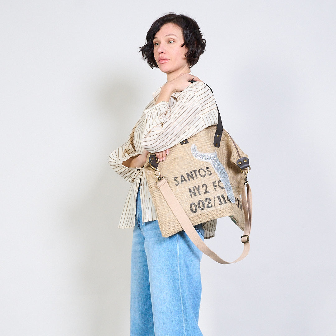 - Izgatavots no atkārtota džutas auduma ar vintage stila izdruku