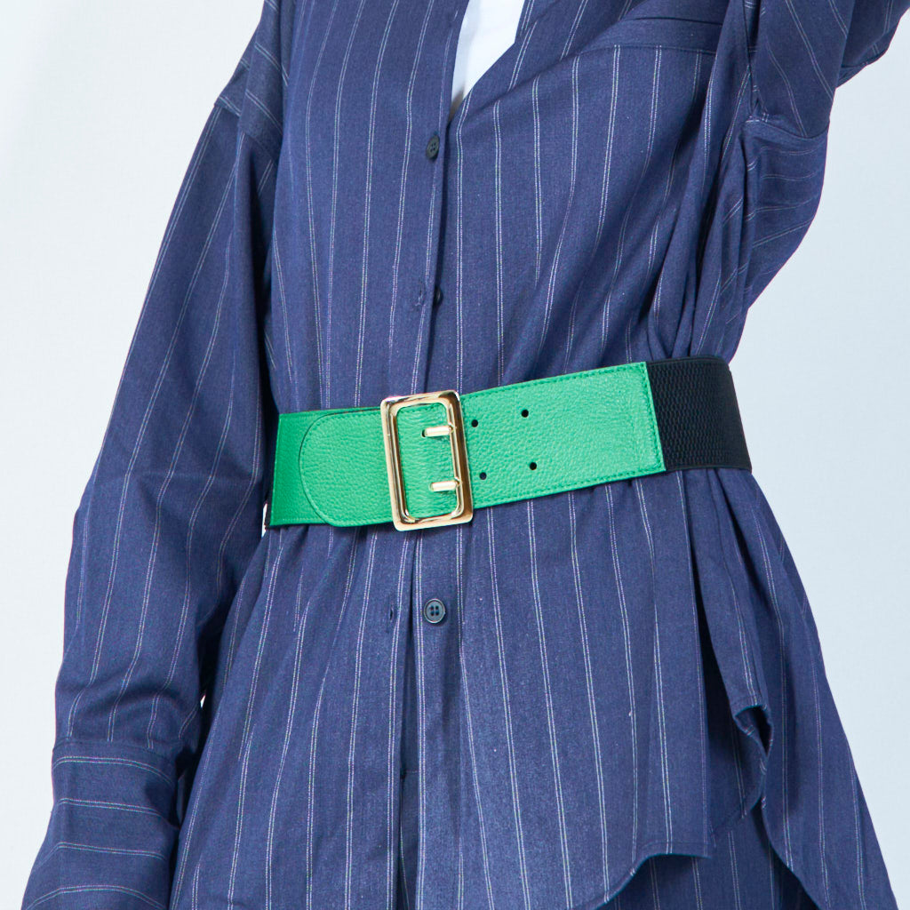 Stilīga plaša stiepšanās josta ar kvadrātveida sprādzes vairumtirdzniecību