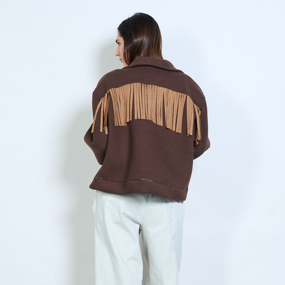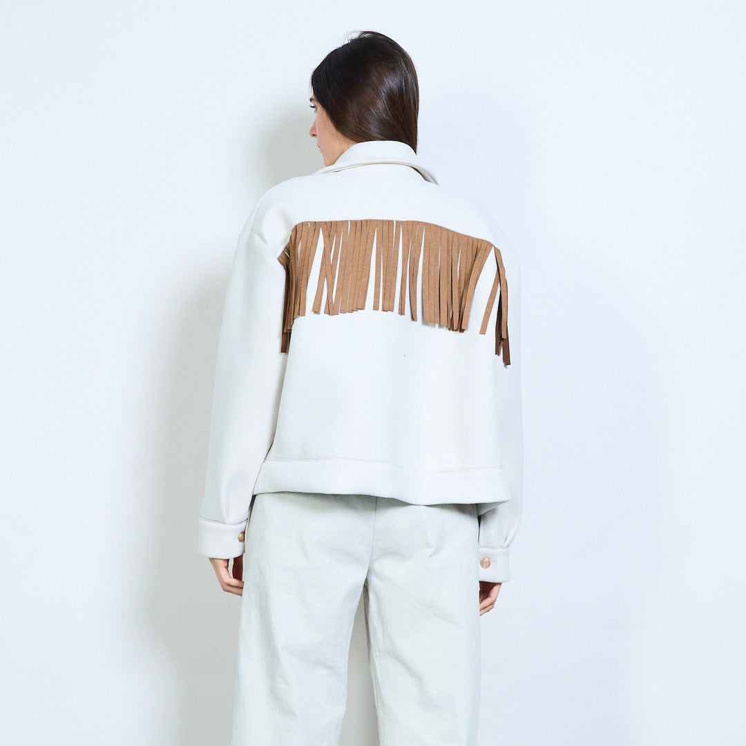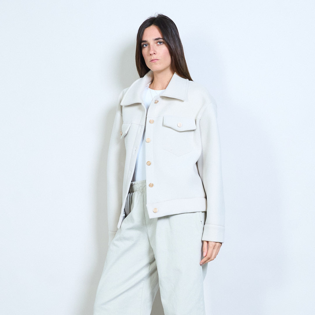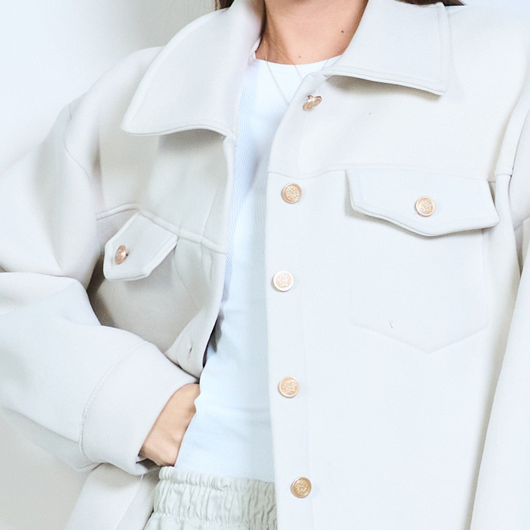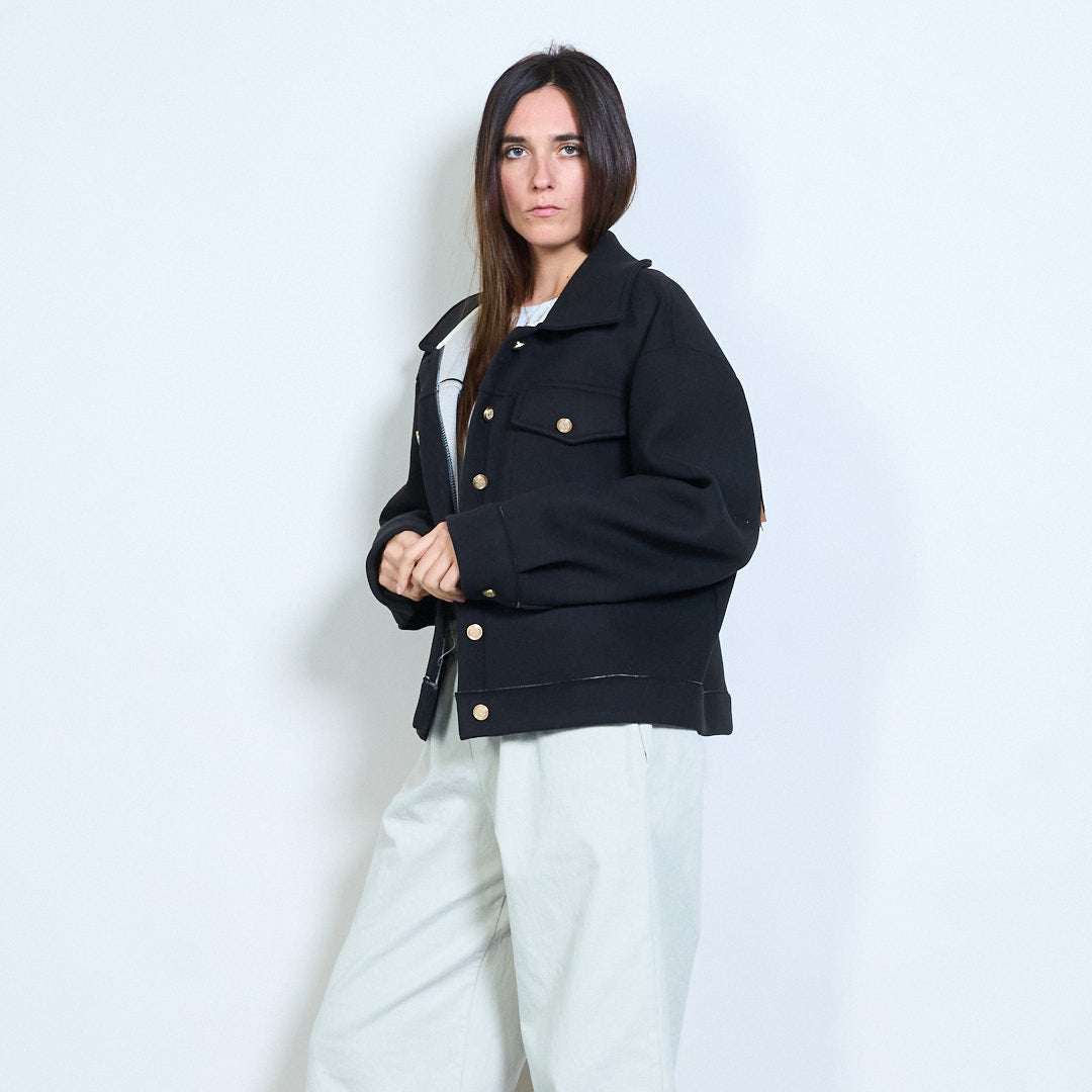 Strukturēta pogas priekšējā boksa jaka ar atloku kabatu vairumtirdzniecību