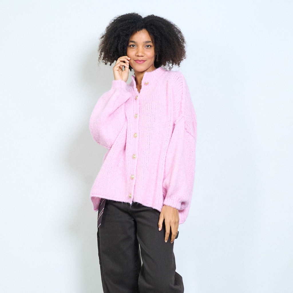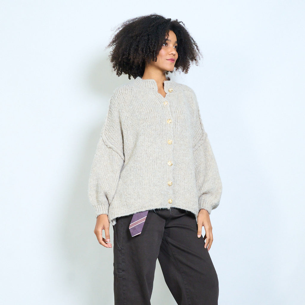 Elegante grofgebreide vest-sweater met knoopdetails, groothandel