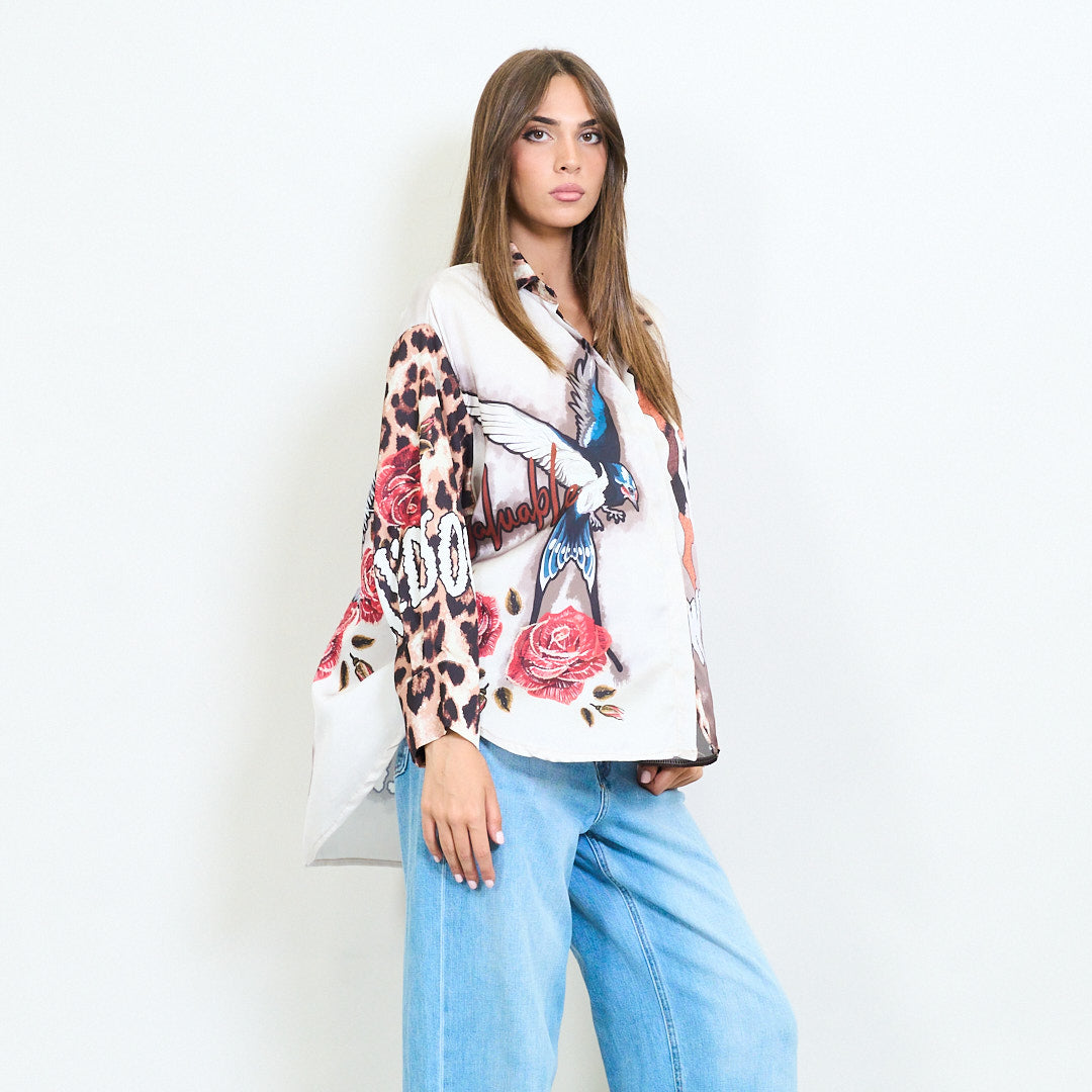- Vetgedrukte satijnen blouse met gemengde grafische en dierenprintdetails