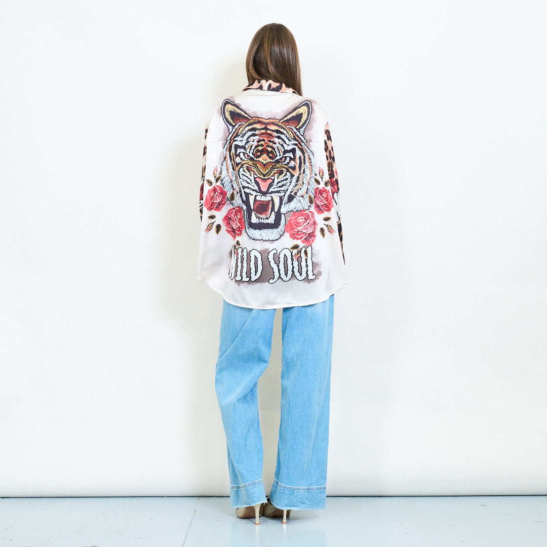 Grafische "Wild Soul" Animal Print Satin Blouse Groothandel