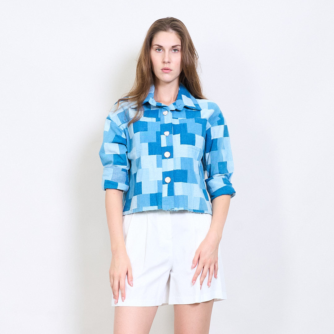 - Boxy-fit shirt met opvallend denim-effect in patchwork-stijl