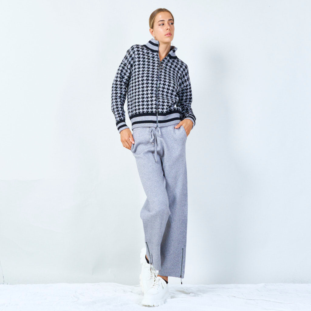 Zip-up Houndstooth Knit Jacket Grooth...