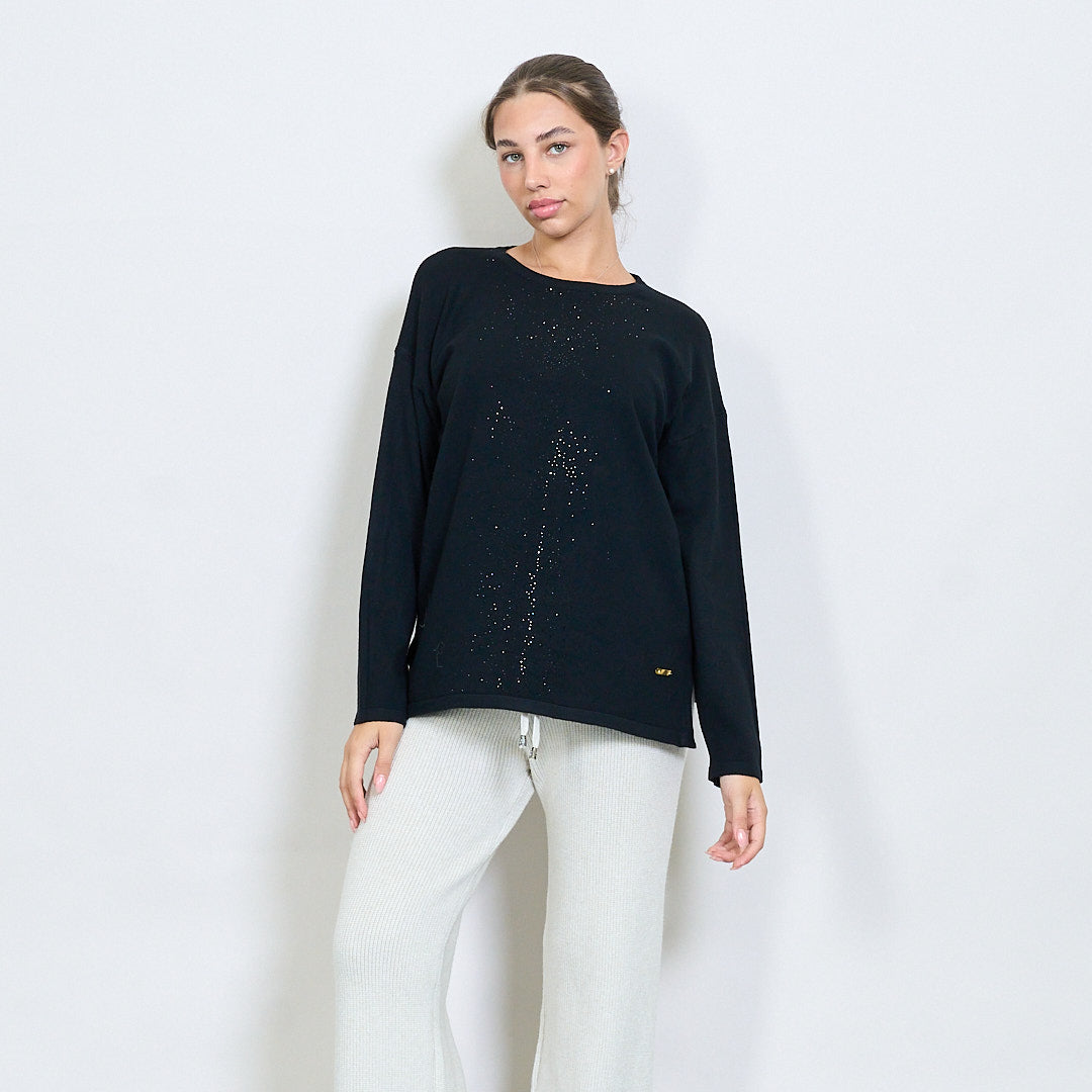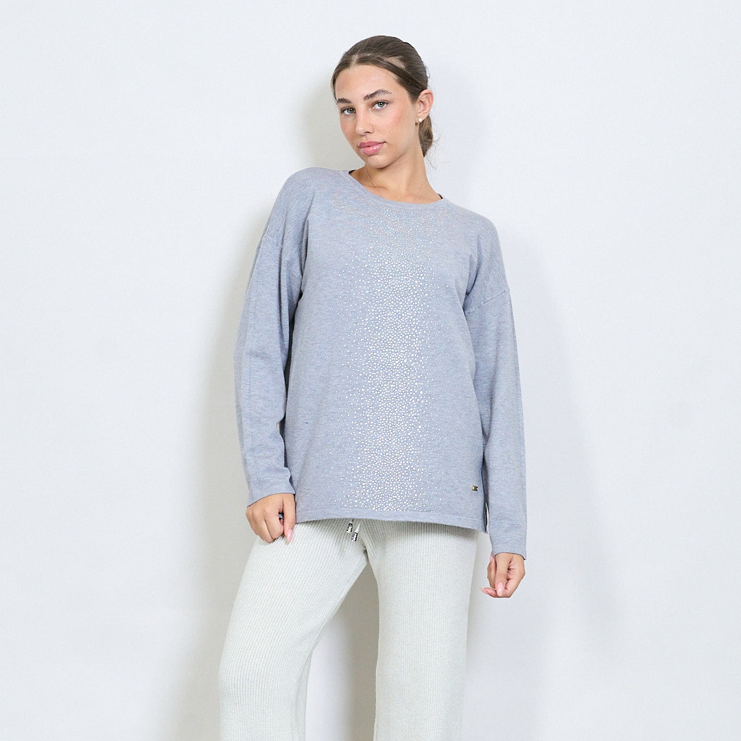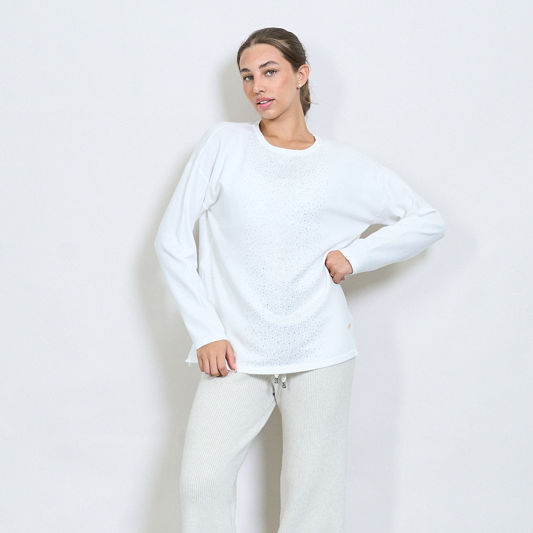 Fijne brei -top met lange mouwen met voorste gradiënt strass detail groothandel